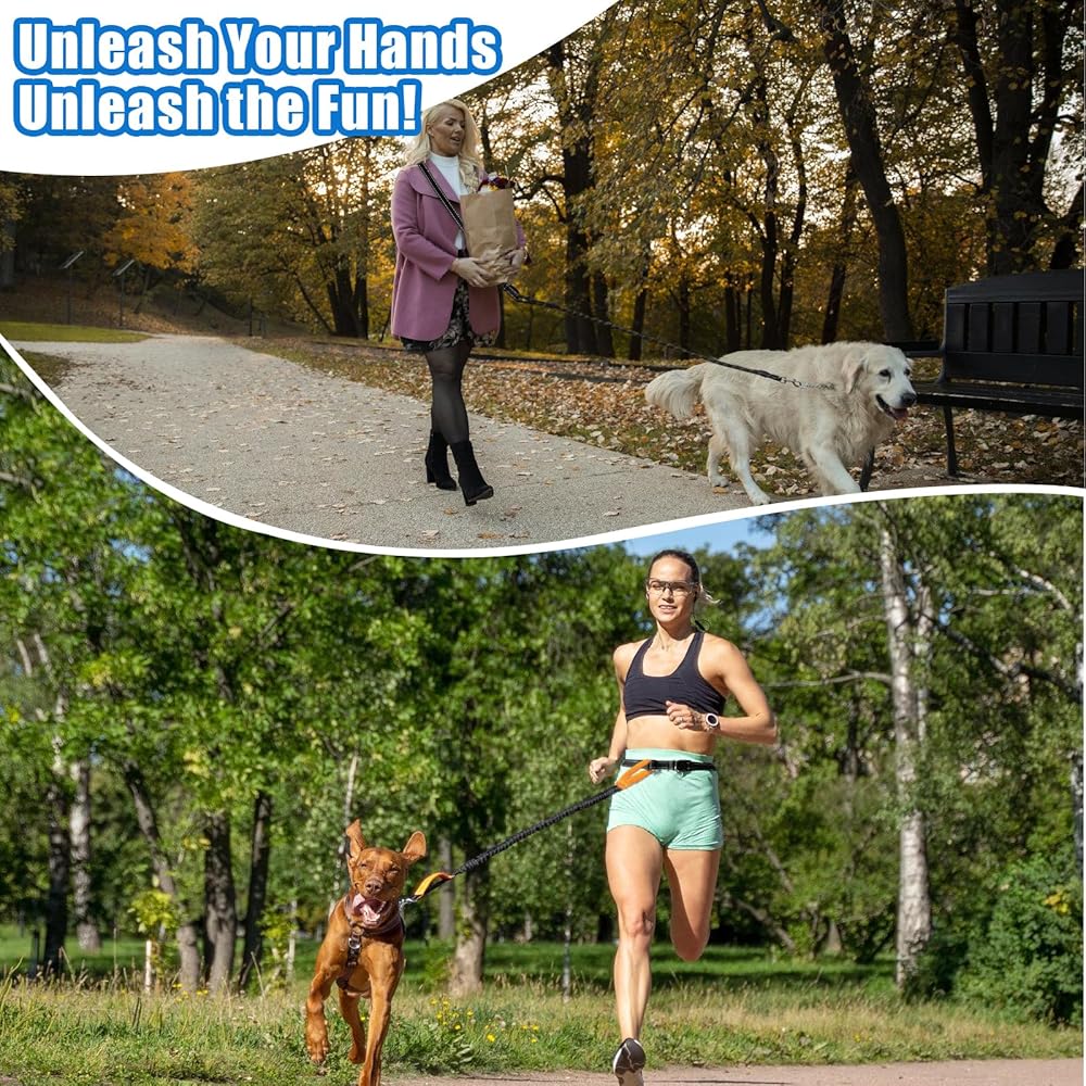 【Hands Free Dog Leash】Lightweight crossbody nylon leash, free your hands, enjoy hands free dog walking experience, adjustable design, can be worn either crossbody or as a belt around the waist, perfect for outdoor training, running, hiking when used