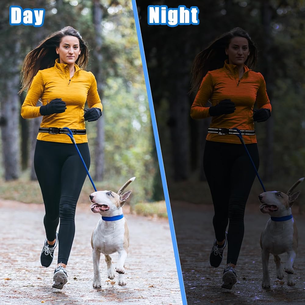 【Reflective Design】Dog waist leash has a reflective line to ensure that you can be seen when walking your dog at night, allowing pedestrians to move out of the way in advance, keeping you and your pet safe