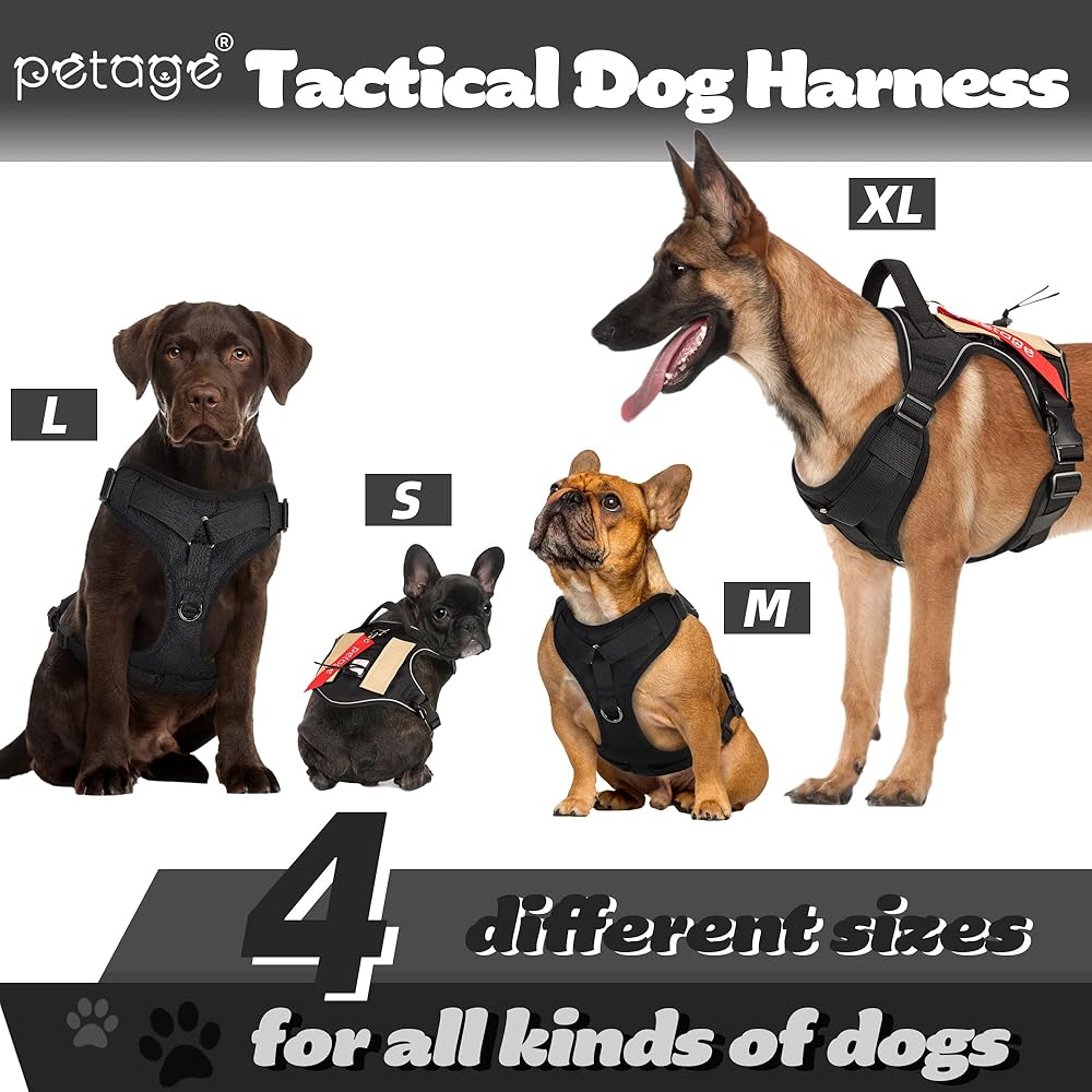 PETAGE Tactical Dog Harness for Small Medium Large Dogs No Pull Adjustable Soft Padded Dog Vest Reflective No-Choke Pet Oxford Vest with Easy Control Pet Vest Military Service Dog Harnesses( BlackL)