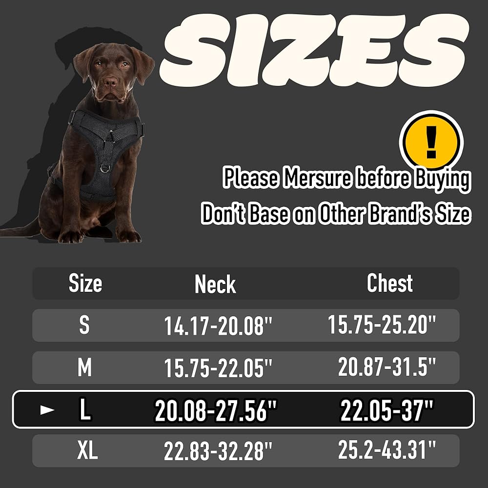 ▶LARGE TACTICAL DOG HARNESS◀Neck Girth: 20.08"-27.56" (51.0--70.0cm), Chest Girth: 22.05"-37" (56.0-- 94.0cm), Weight:45-80lbs(20.4--36.6KG). Ideal for Large Breeds such as German Shepherd, Belgian Malinois, Golden Retriever, Huskie, Labrador, Akita, etc. A professional working dog vest for service, police or military dogs, but also good for hunting and all outdoor companion dogs.