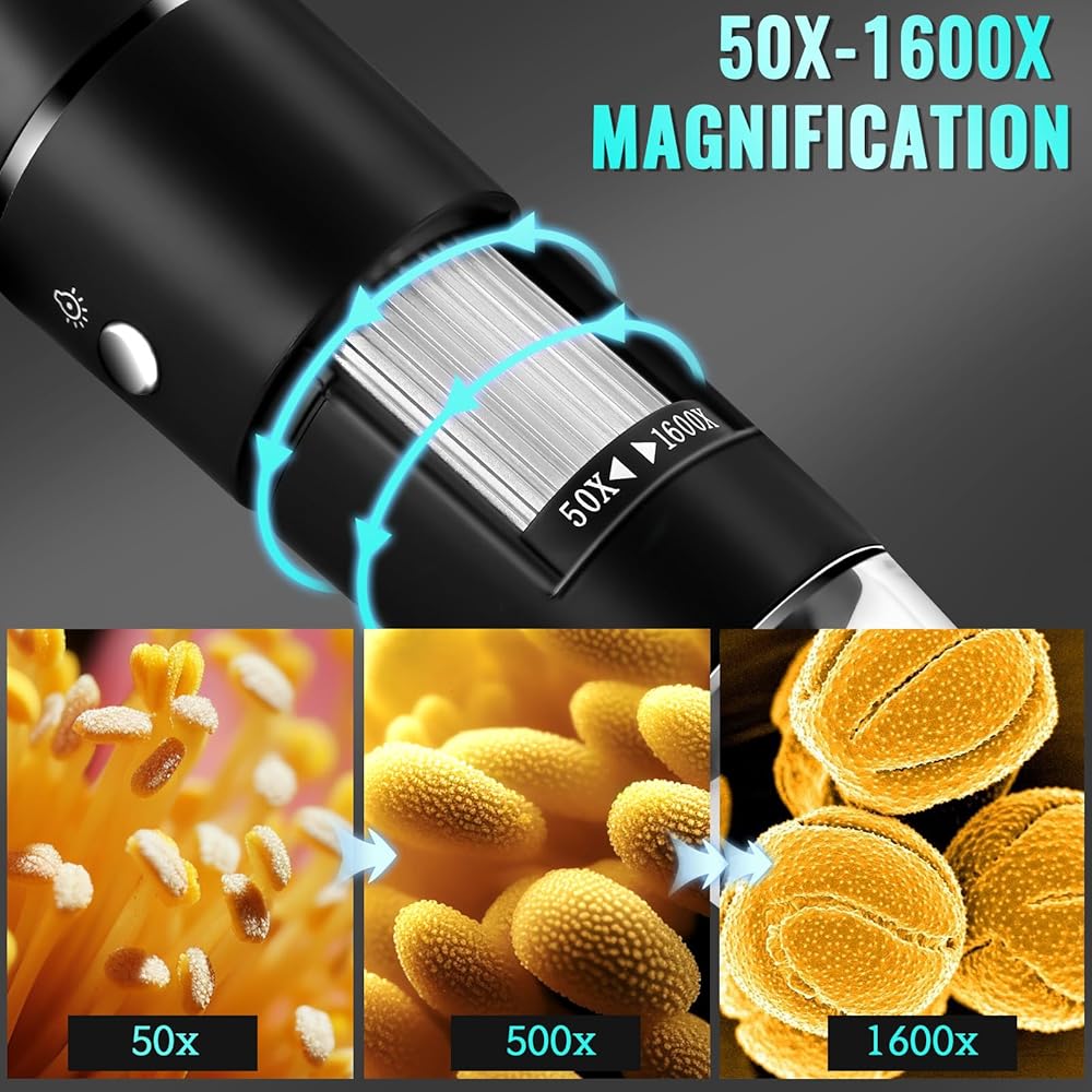 - التقط صورًا مذهلة وعالية الدقة باستخدام مجهر USB الرقمي الذي يتميز بتكبير 50x-1600x لإجراء فحص تفصيلي.
