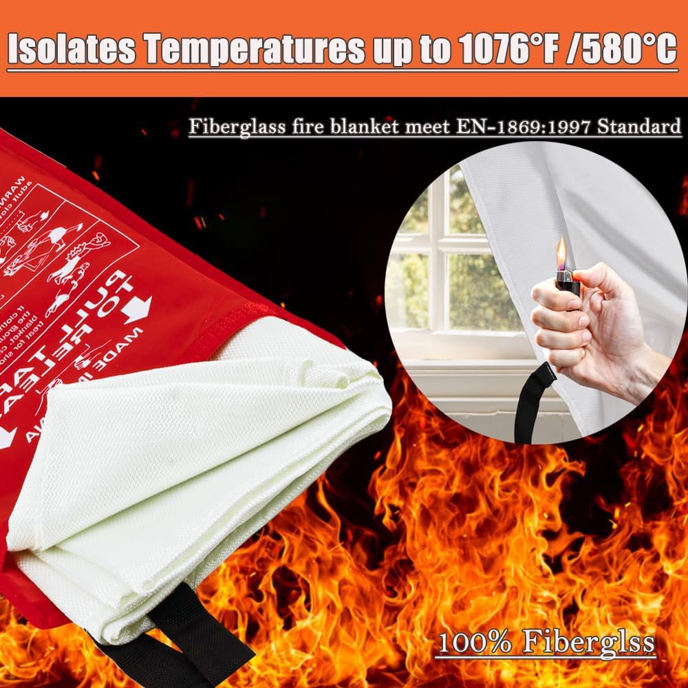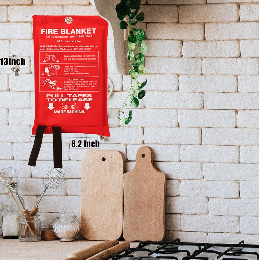 ✅ [بطانية حريق للمنزل] مصممة كجهاز أساسي للسلامة المنزلية في حالات الطوارئ. احتفظ ببطانية الحريق في المطبخ أو الفناء الخلفي أو السيارة أو خذها للتخييم. تحتوي على فتحة ثقب حتى يمكن تعليقها بسهولة على الجدران (نصائح ودية: لا تستخدم الماء أبدًا على نار الطبخ).