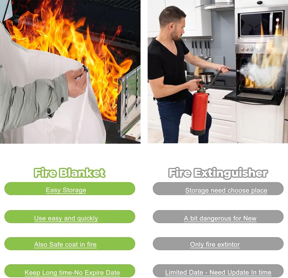 ✅ [بطانية إخماد الحرائق سهلة الاستخدام] ما عليك سوى نشر البطانية عن طريق سحب العروات للأسفل - إطفاء الحرائق الصغيرة بسرعة وسهولة دون أي فوضى (أبسط من طفايات الحريق الشائعة). لا غنى عنه في مطبخك وفناءك الخلفي ومجموعة النجاة في السيارة للحماية.