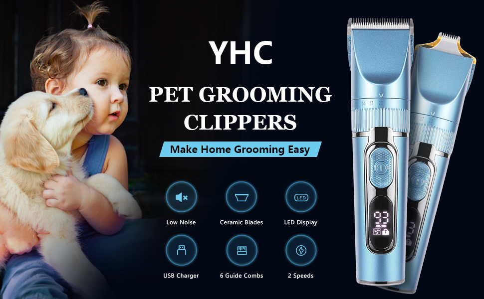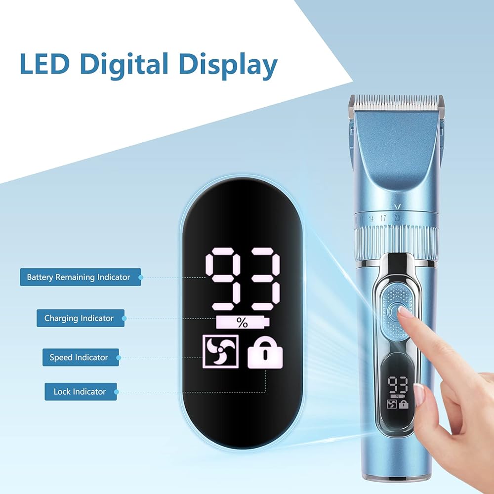 شاشة LED رقمية - تم تصميم ماكينة تشذيب الكلاب YHC مع شاشة LED تعرض عمر البطارية المتبقي وسرعتها. تعمل وظيفة القفل الفريدة على منع التشغيل العرضي أثناء السفر.