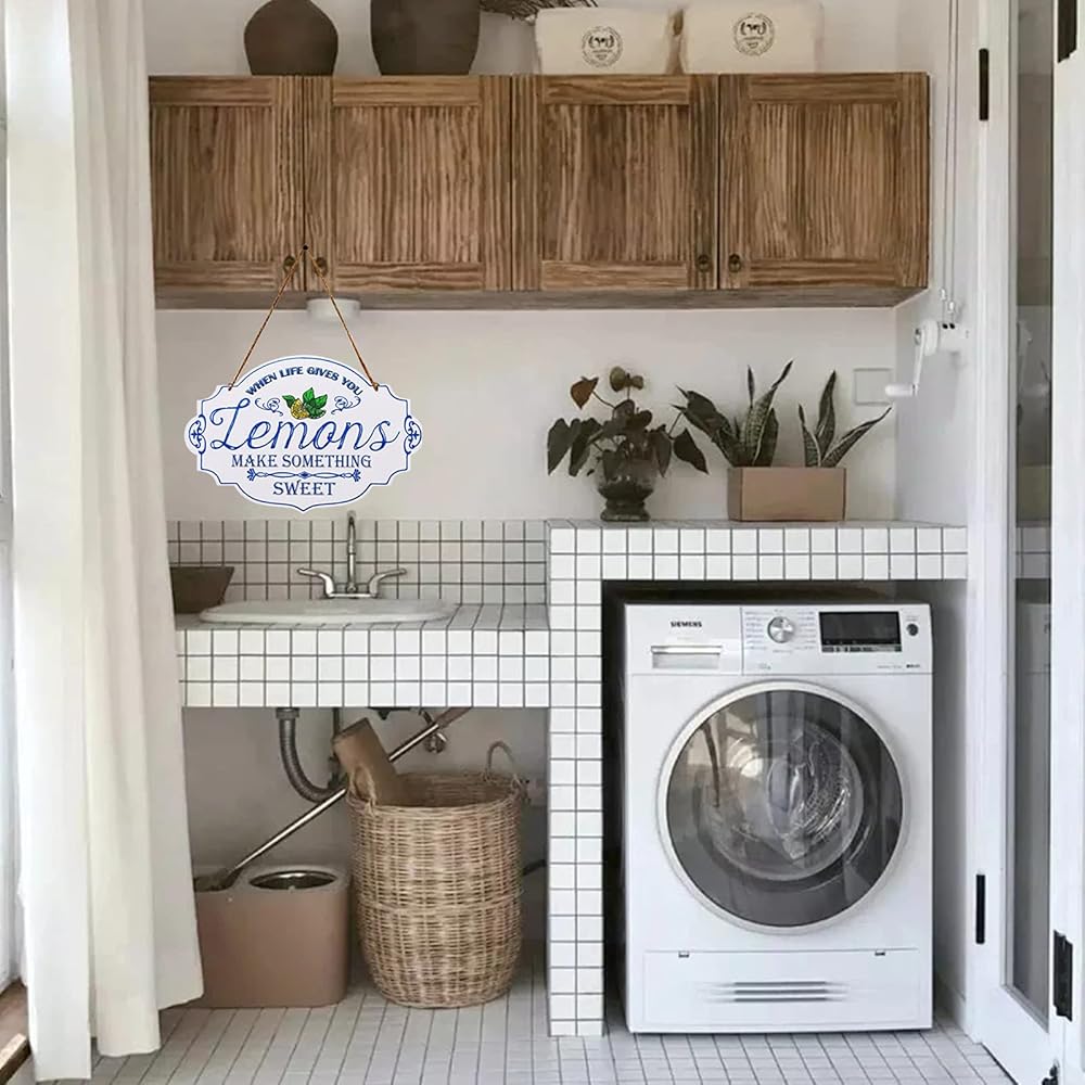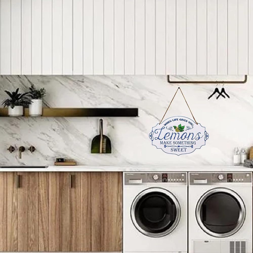 المقاس المثالي: 13 بوصة عرض × 9 بوصة طول × 1/4 بوصة سمك مصنوعة من الخشب الفاخر. جاهزة للتعليق، مرفقة بخيط أبيض، لذلك يمكن عرضها بسهولة في أي مكان. هذا "عندما تعطيك الحياة ليمونز..." لافتات معلقة بتصميم كلاسيكي عتيق مثالية لأي مطبخ. يمثل هدية لطيفة للنساء أو الأصدقاء أو العائلة أو أي شخص يحب ديكور الليمون، يذكرك بالاستمرار في التفكير الإيجابي.