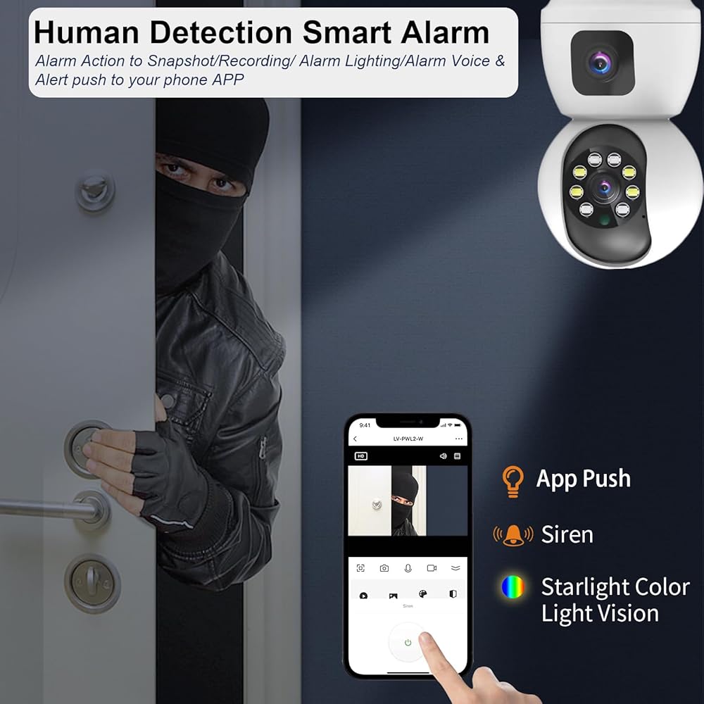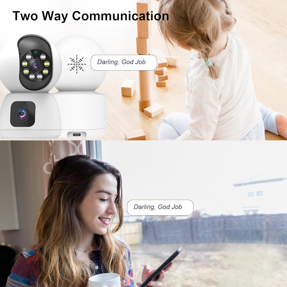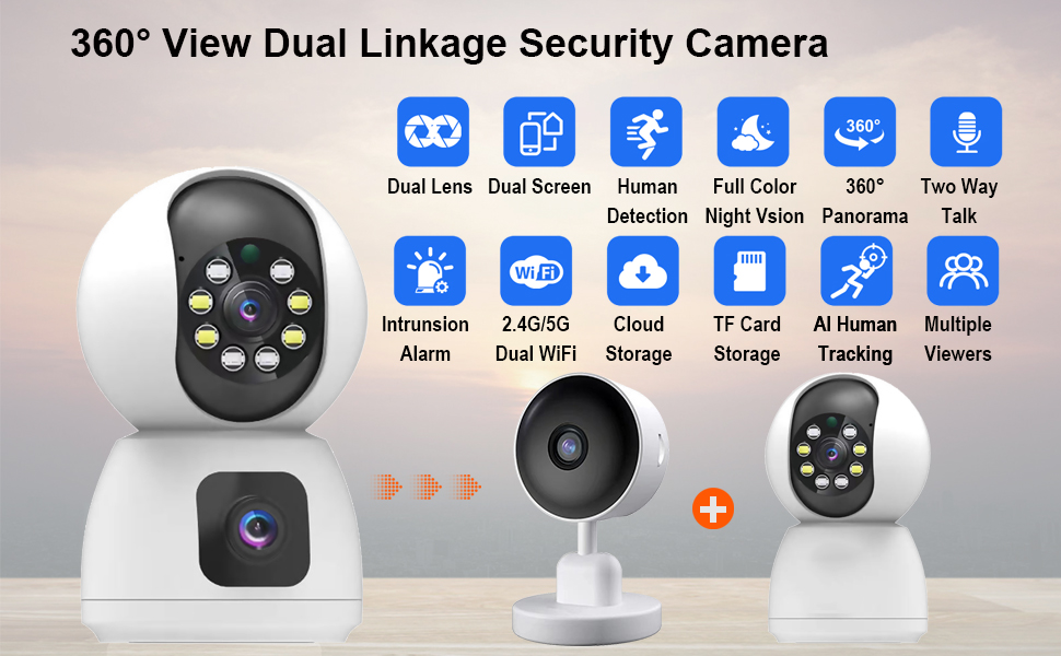 【كاميرا أمان داخلية مزدوجة 1080 بيكسل】 كاميرا الأمان الداخلية هذه مبنية على كاميرتين 1080 بيكسل، كاميرا الرصاصة تقفل دائمًا منطقة المراقبة، وتعرض صورة الفتحة التي تراقبها بشكل مباشر؛ تقوم الكاميرا المقببة ذات التدوير/الإمالة بقفل الإنسان وتتبع الحركة البشرية. تحقق كاميرا الأمان المزدوجة هذه مراقبة 360 درجة، وتحمي عائلتك في كل مكان.