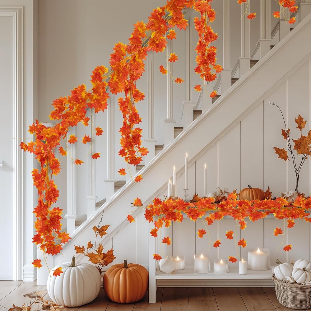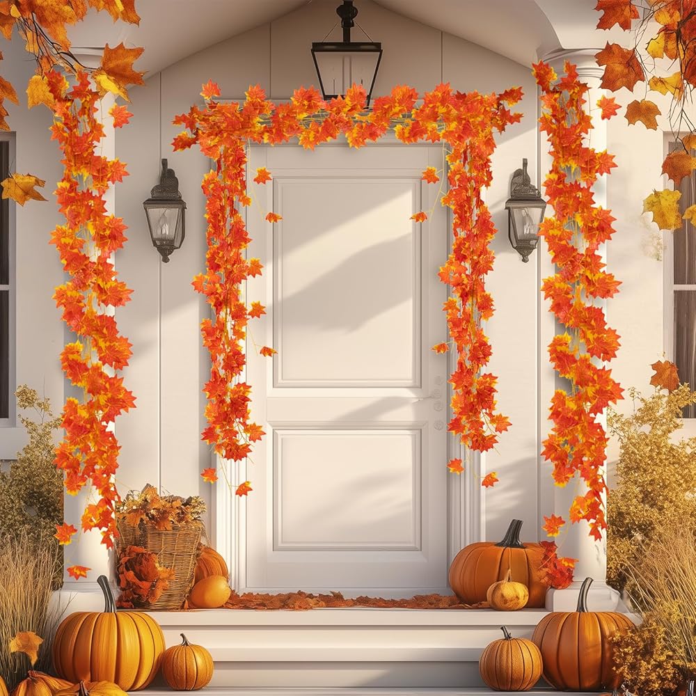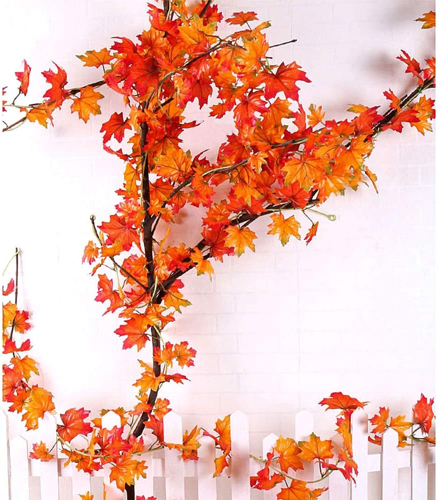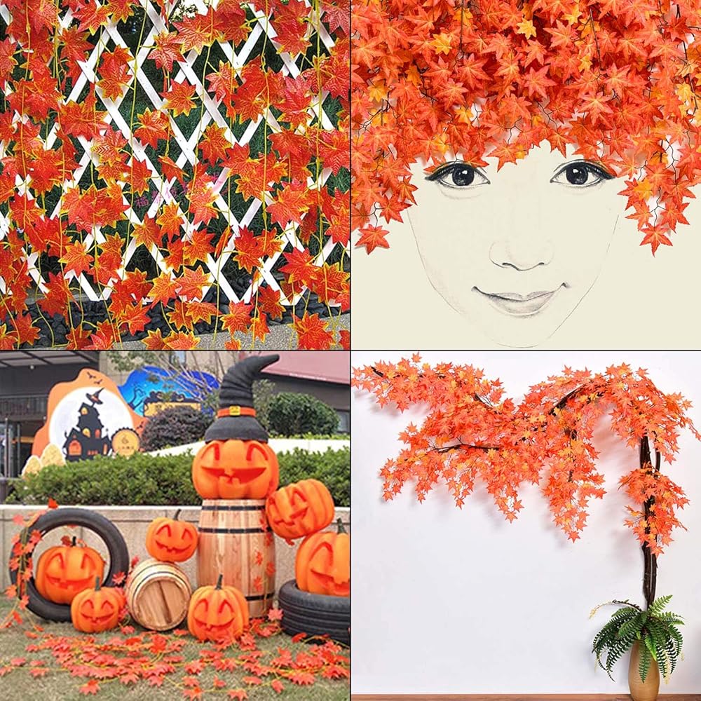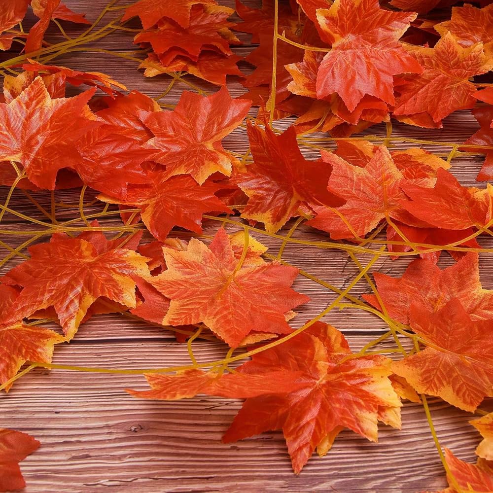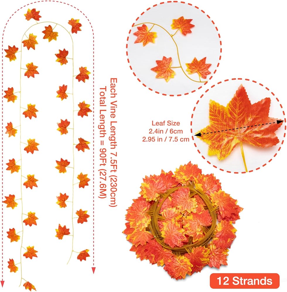 نوفرلايف 12 حزمة 27.5 م / 90 قدم ورقة القيقب الاصطناعي ، أوراق وهمية أوراق الخريف إكليل زهور معلقة نبات للمنزل والحديقة والفندق وحفلات الزفاف والمهرجانات ديكور عيد الميلاد رأس السنة الجديدة