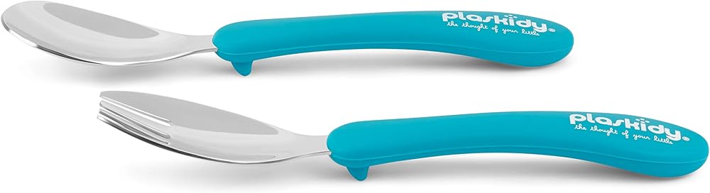 ★PREMIUM QUALITY STAINLESS STEEL SPOONS: Top rack dishwasher safe, BPA free, Children's Size Silverware, Safety silverware for children, Base keeps utensil tips off table and other surfaces, away from germs.