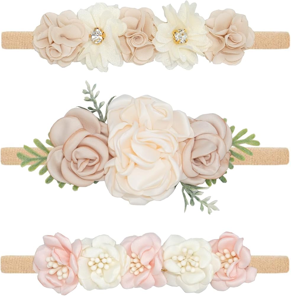 WNYUJOY طفلة الأزهار Headbands النايلون زهرة عصابات الشعر 3 قطعة إكسسوارات الشعر للأطفال حديثي الولادة الرضع الصغار