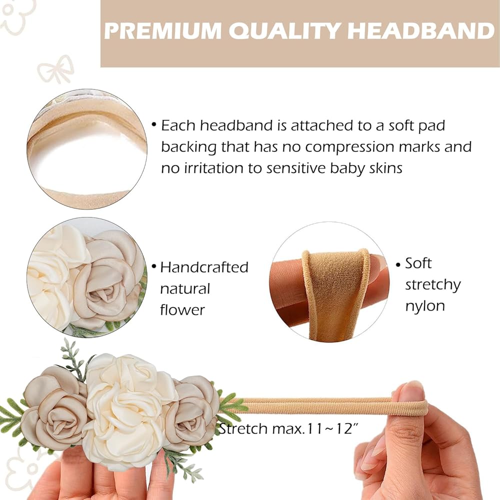 • ناعمة ومطاطة وسهلة الاستخدام - كل ربطة شعر مصنوعة من زهرة مصنوعة يدويًا ولكنها تبدو مثل الزهور الحقيقية بنفس الملمس الناعم والمخملي. يمكن تمديد الأربطة المصنوعة من النايلون العاري يدويًا لتناسب رأس الرضيع حتى الفتيات الصغيرات وتجعل من السهل ارتدائها وخلع رأس المولود الجديد!