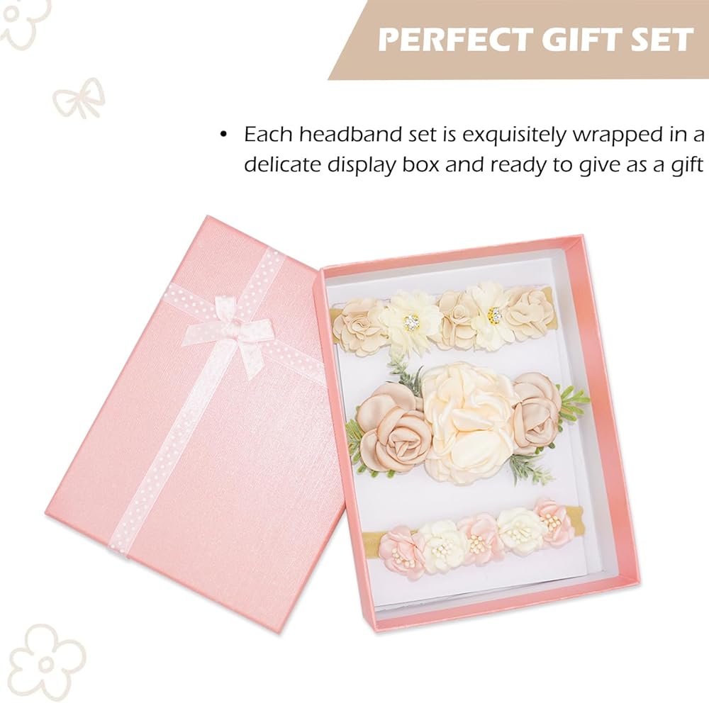 • مجموعة متنوعة من الألوان والأنماط - لقد اخترنا 3 ألوان وأنماط وعصابات رأس على شكل زهور متناسقة لكل عبوة من ربطات شعر الزهور الصغيرة المغلفة في صندوق وردي رقيق، ومن المؤكد أنك ستحصلين على الإكسسوار المثالي لكل ملابس طفلتك الصغيرة.