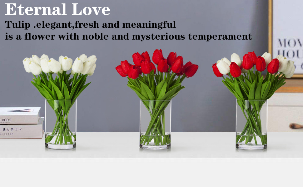 • طبيعية وواقعية: زهور التوليب الصناعية ذات ملمس بتلات طبيعي شفاف، وملمس ناعم وسميك ومرن، وملمس رقيق وواقعي. ملونة نابضة بالحياة مع لمسة حقيقية، تبدو وكأنها حقيقية. نادرا ما يكون لديك رائحة بلاستيكية أو لا.
