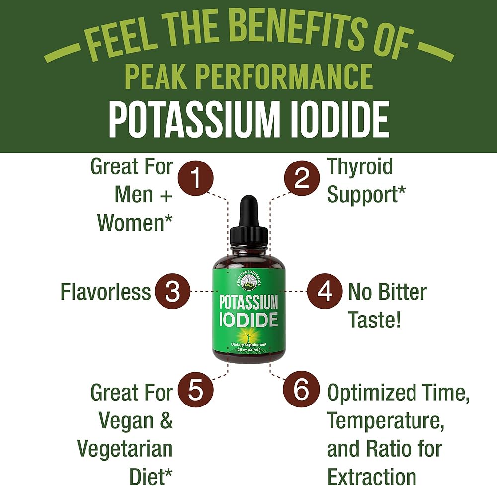 لا تنخدع! ليست كل مكملات اليود متشابهة. على عكس حبوب أو كبسولات اليود، التي تتطلب المعالجة عن طريق القناة الهضمية، يعتبر يوديد البوتاسيوم السائل Peak Performance أكثر فعالية مع التوافر البيولوجي العالي. عظيم للبالغين - الرجال والنساء.