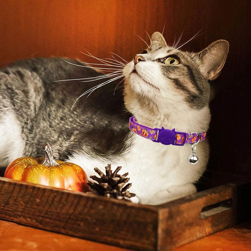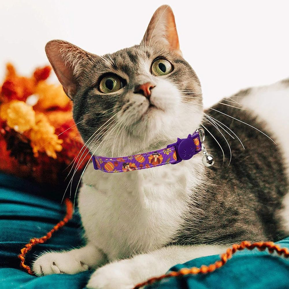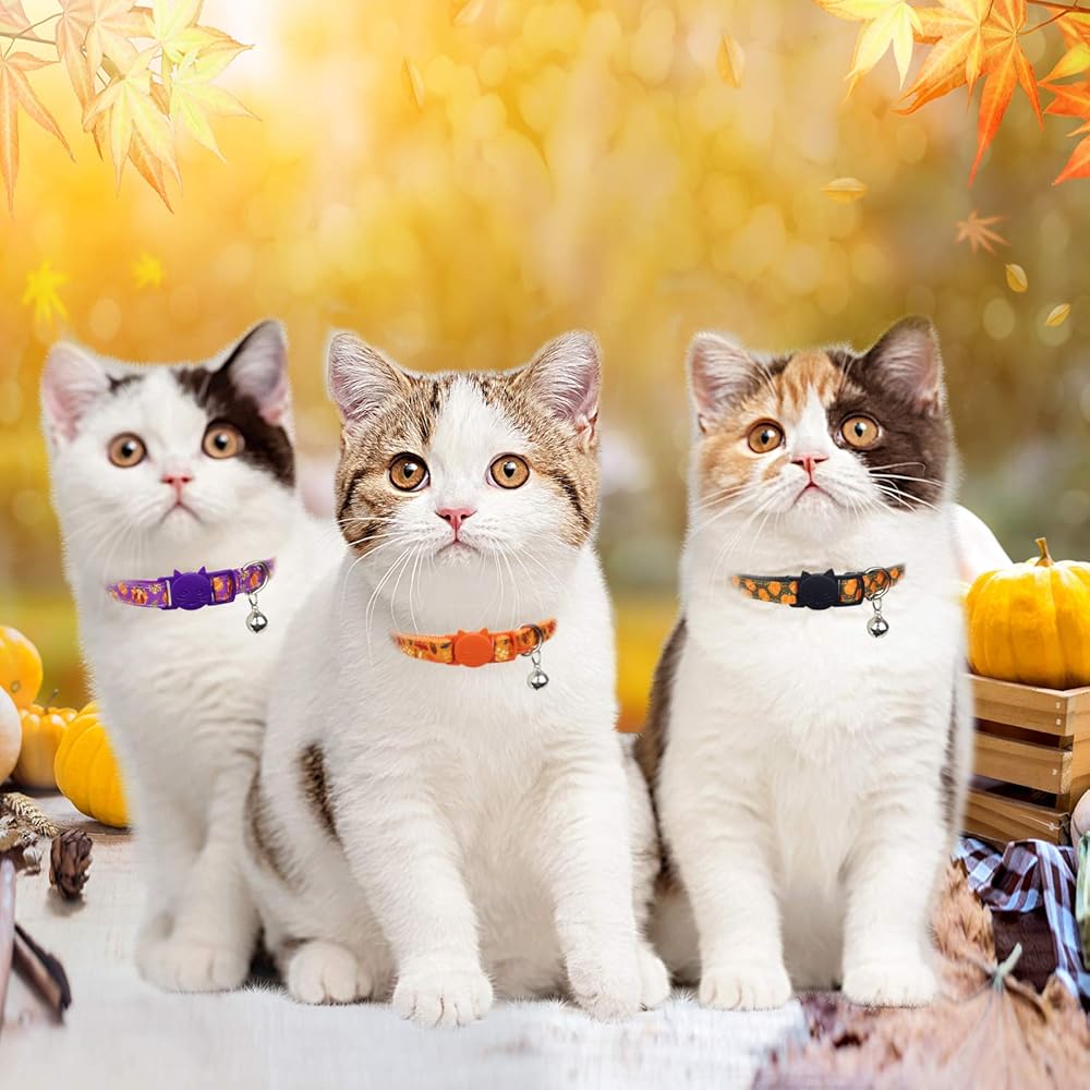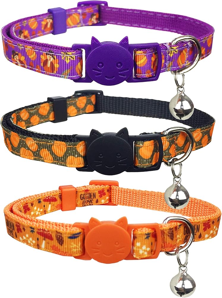 【تغليف قيمة】★ 1 ديك رومي أرجواني + 1 برتقالي أسود + 1 غابة برتقالية. طوق القطط ذو المظهر الجذاب والمرح مناسب لمعظم القطط والكلاب الصغيرة. ذكر أو أنثى، للاستخدام الداخلي والخارجي