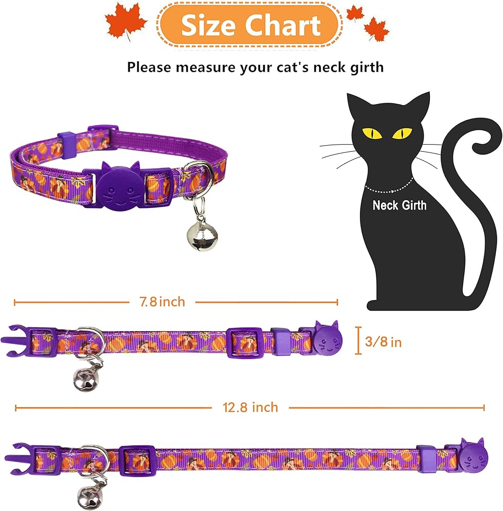 【نمط مهرجان الخريف/عيد الشكر】طوق قطط لفصل الخريف وعيد الشكر مع جرس لطيف، تصميم من تصميم Pohshido.
