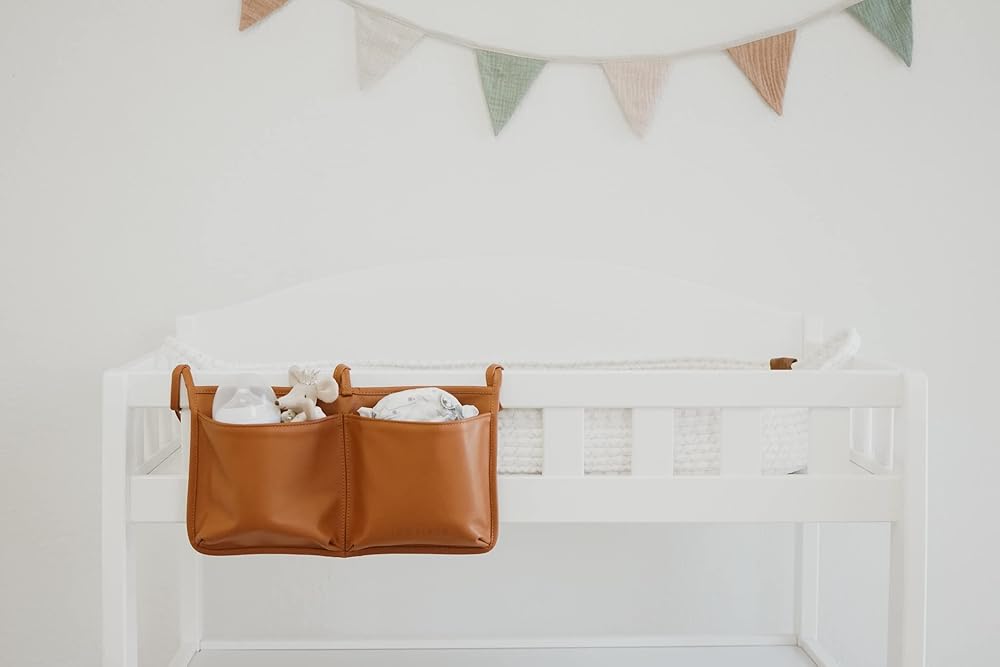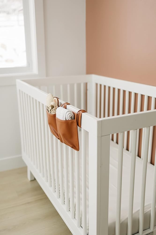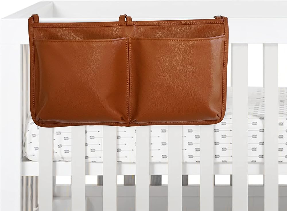 منظم سرير أطفال لو آند كين - منظم حفاضات معلق من الجلد النباتي لسرير الأطفال - سرير أطفال بجانب السرير بحجم 13.5 × 7.5 بوصة - مقاوم للماء والبقع