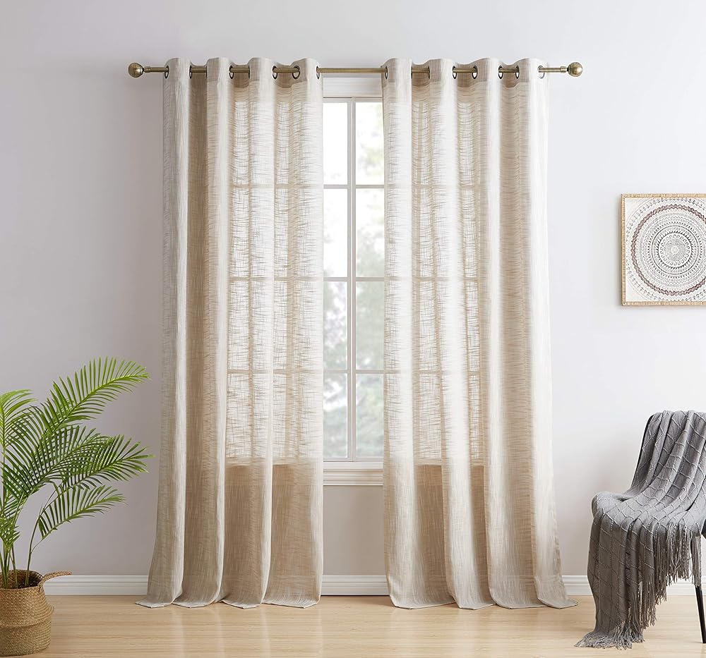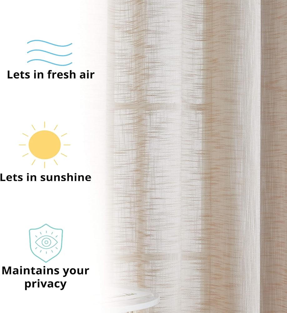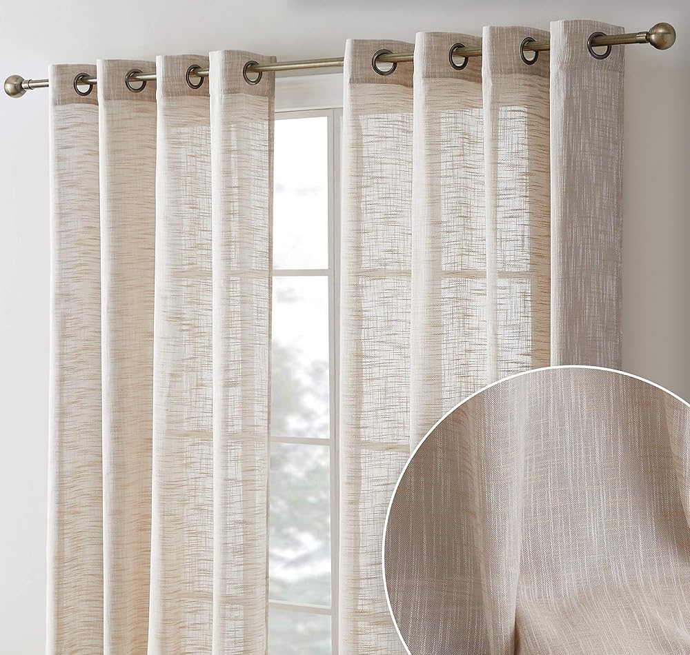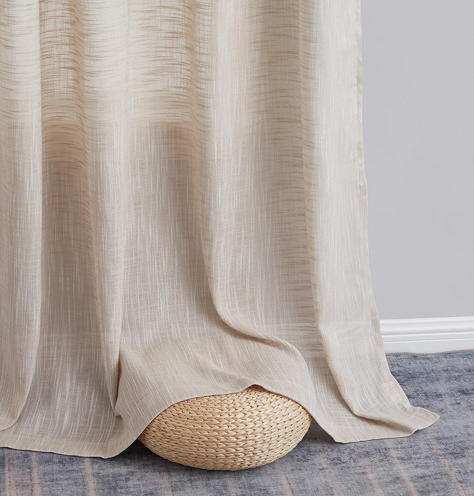 نسيج ذو مظهر منسوج من الكتان الصناعي: تم حياكته بعناية لضمان أن تكون الجودة في أقصى حالاتها، توفر هذه الستائر ملمسًا فاخرًا ناعمًا يمكن أن يعمل مع طبقات بجوار الستائر المعتمة الباهتة أو ببساطة تعليقها بمفردها لأي موضوع غرفة. ستناسب تمامًا مظهر النسيج المنسوج الذي يكمل الكوخ أو الريف أو موضوع المزرعة الرائجة.