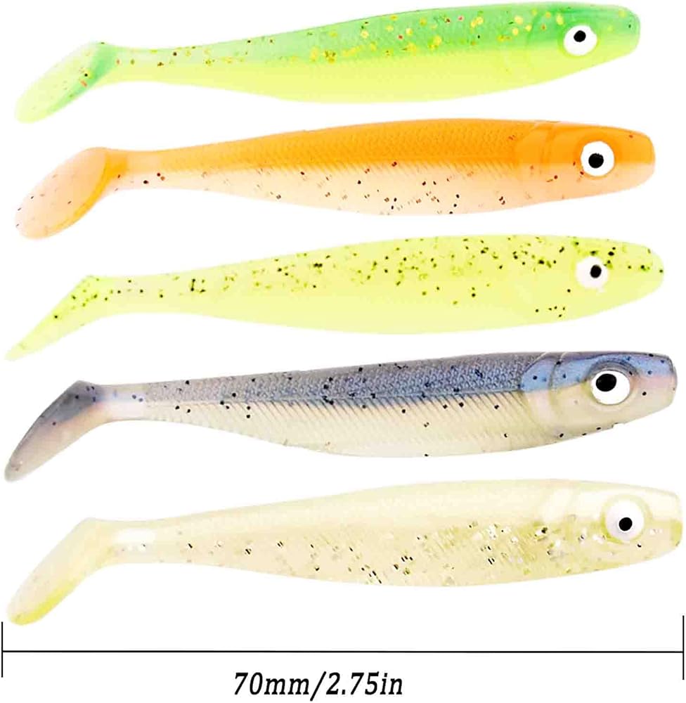 50 قطعة من طعوم السباحة البلاستيكية الناعمة ذات الذيل المجذاف لصيد السمك والسلمون وسمك القد