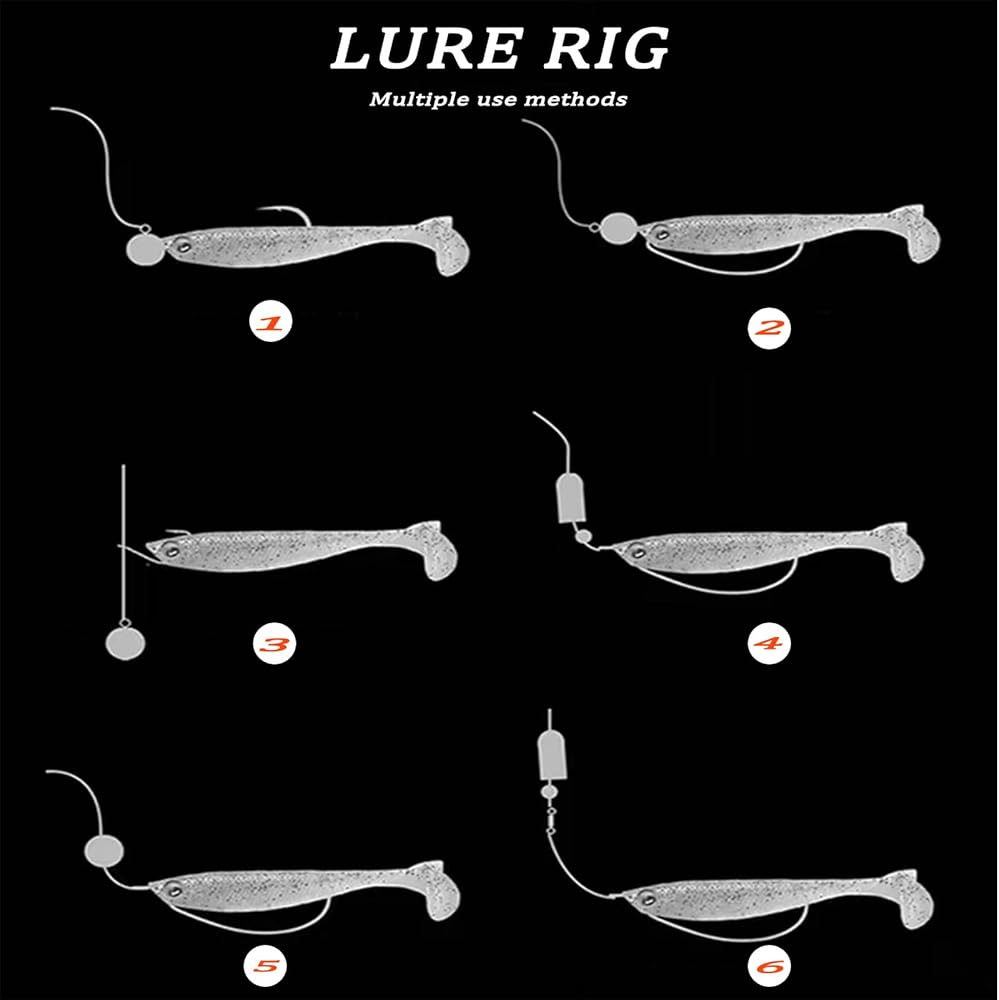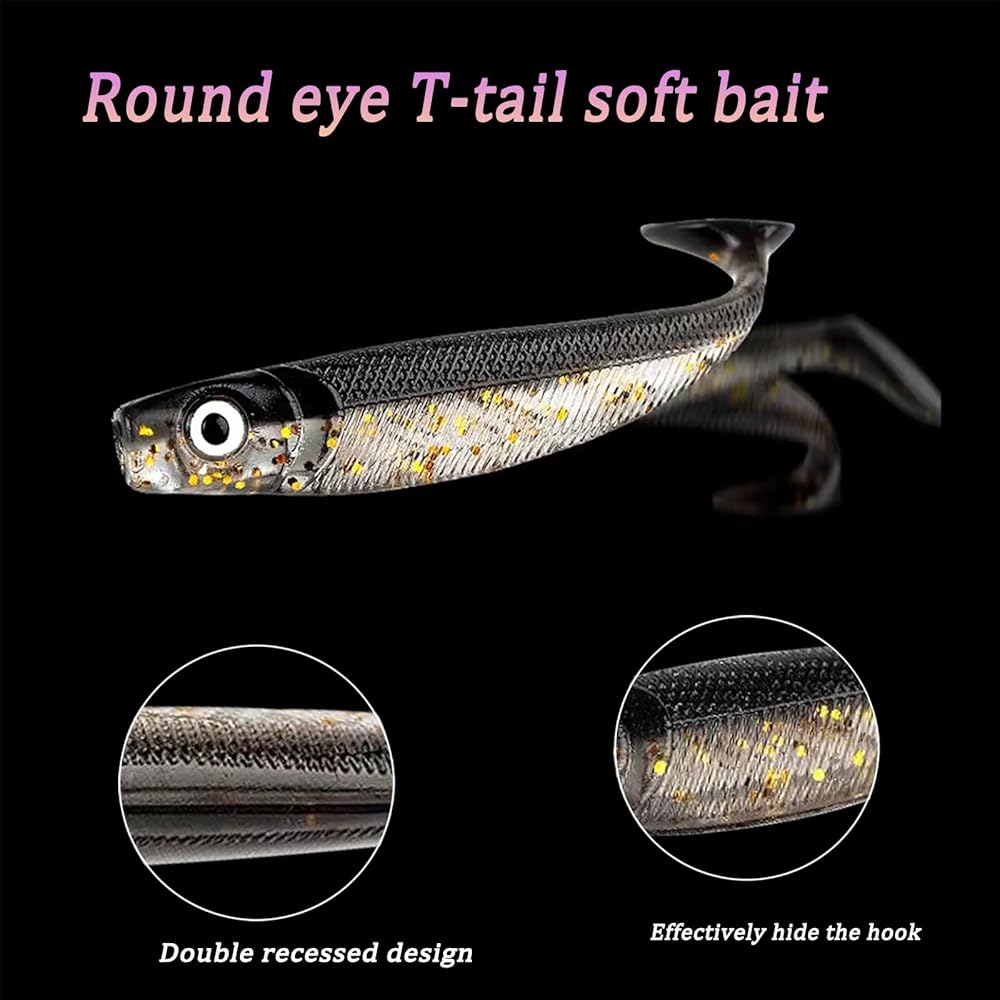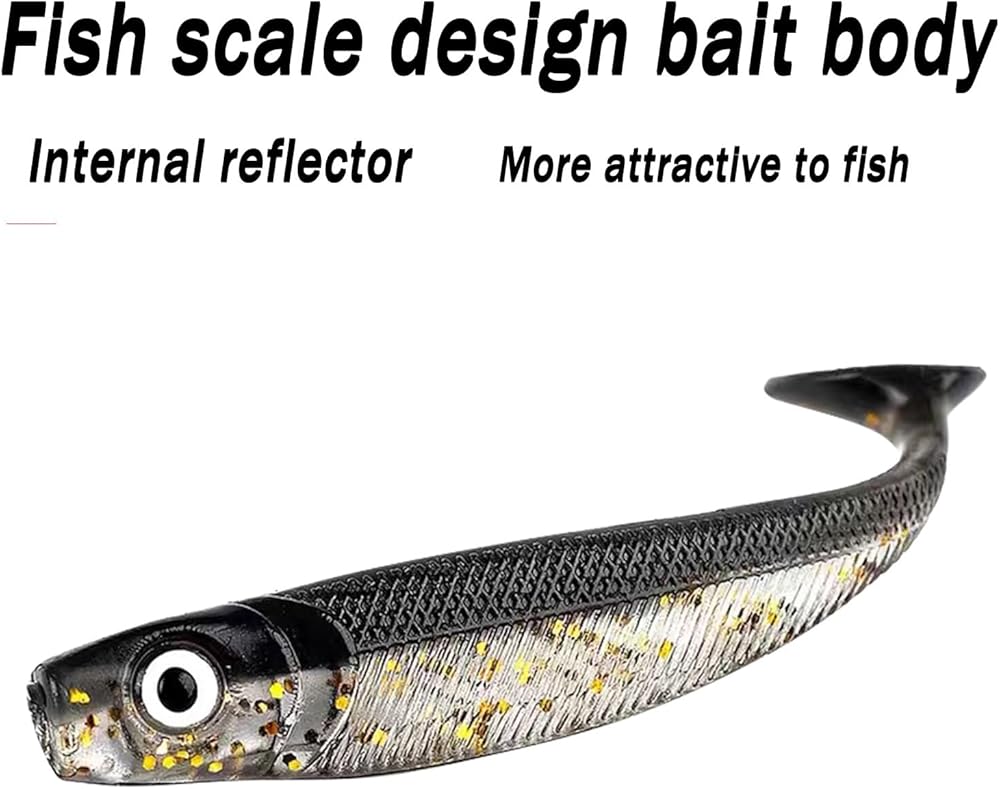 - حركة سباحة نابضة بالحياة: تصميم ذيل مجداف مصنوع من مادة فائقة النعومة، يجلب حركات سباحة جذابة لجذب الأسماك الجائعة.
