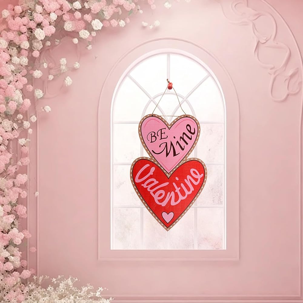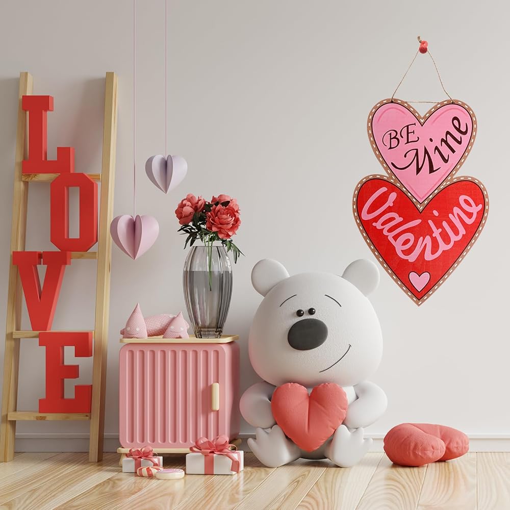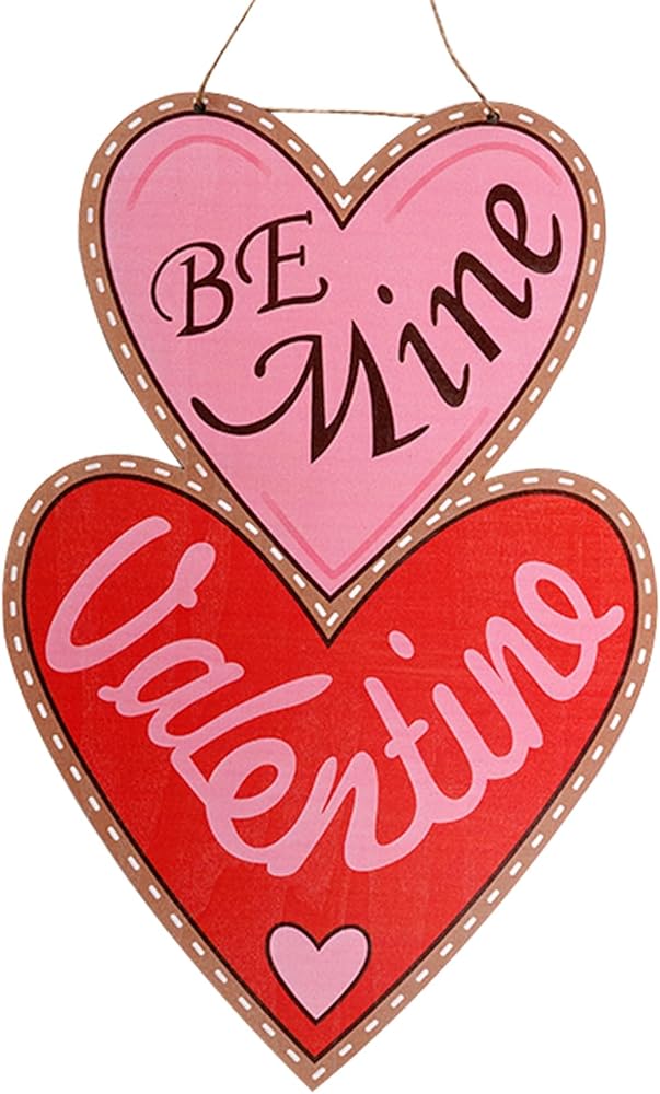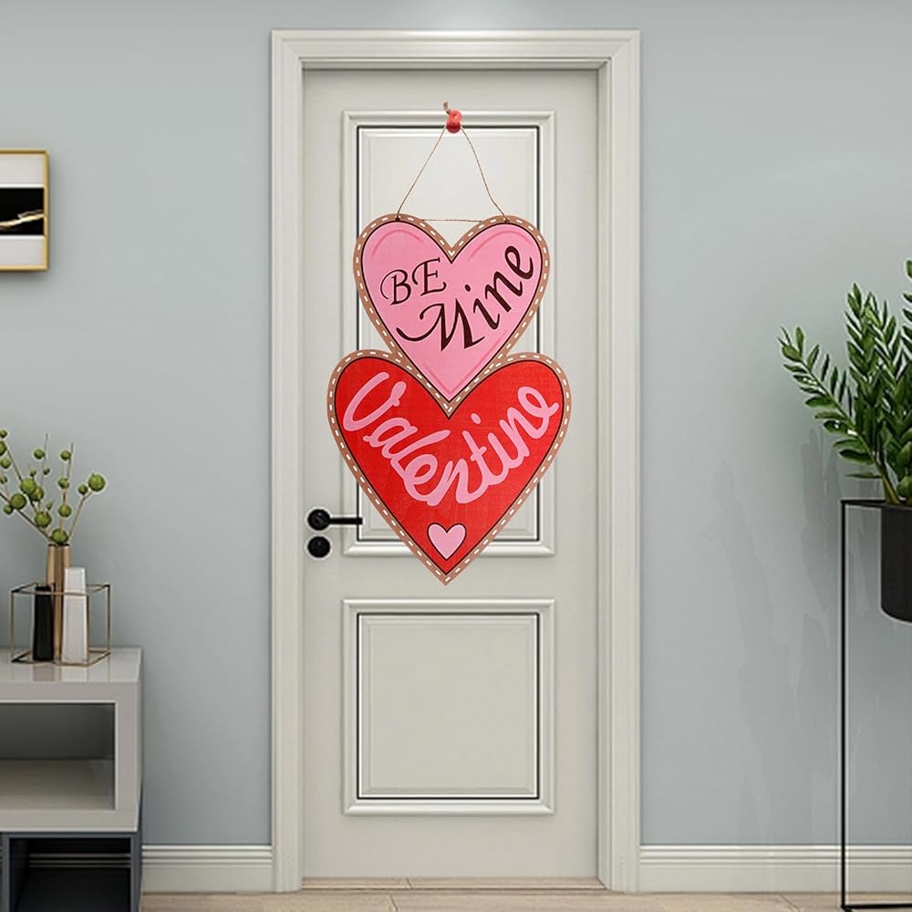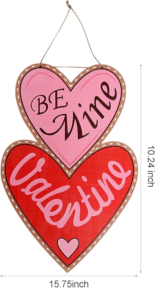 • Valentine's Day Sign for Front Door Decor : You will receive 1 piece of valentine Hear shape door hanger and a hemp rope. The size of this valentines day conversation hearts door sign is 15.75x10.24 inches, consisting of pink and red hearts. The valentine's day wooden door hanging sign have the words "BE Mine" and "Valentine" respectively, making them perfect for hanging on doors or windows on Valentine's Day.