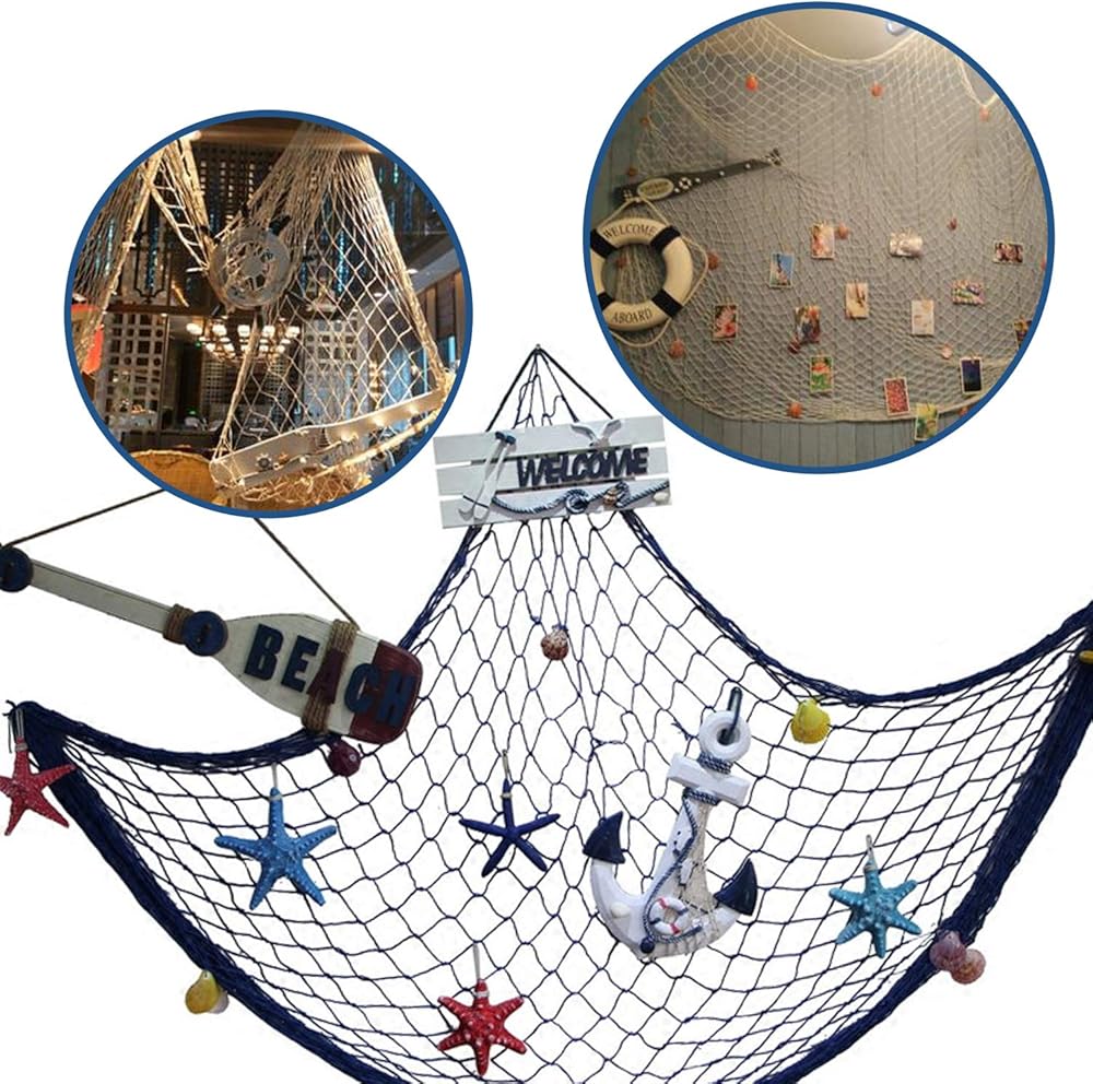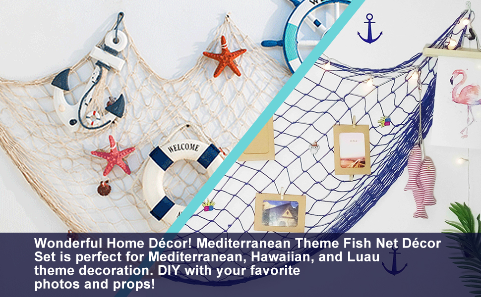 ديكور منزلي رائع! مجموعة ديكور شبكة السمك بنمط البحر الأبيض المتوسط مثالية للديكور بطابع البحر الأبيض المتوسط وهاواي ولواو. اصنع بنفسك مع صورك ودعائمك المفضلة!