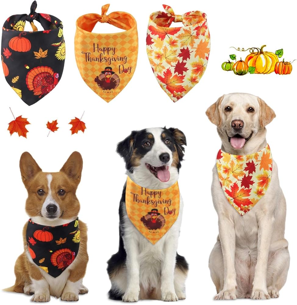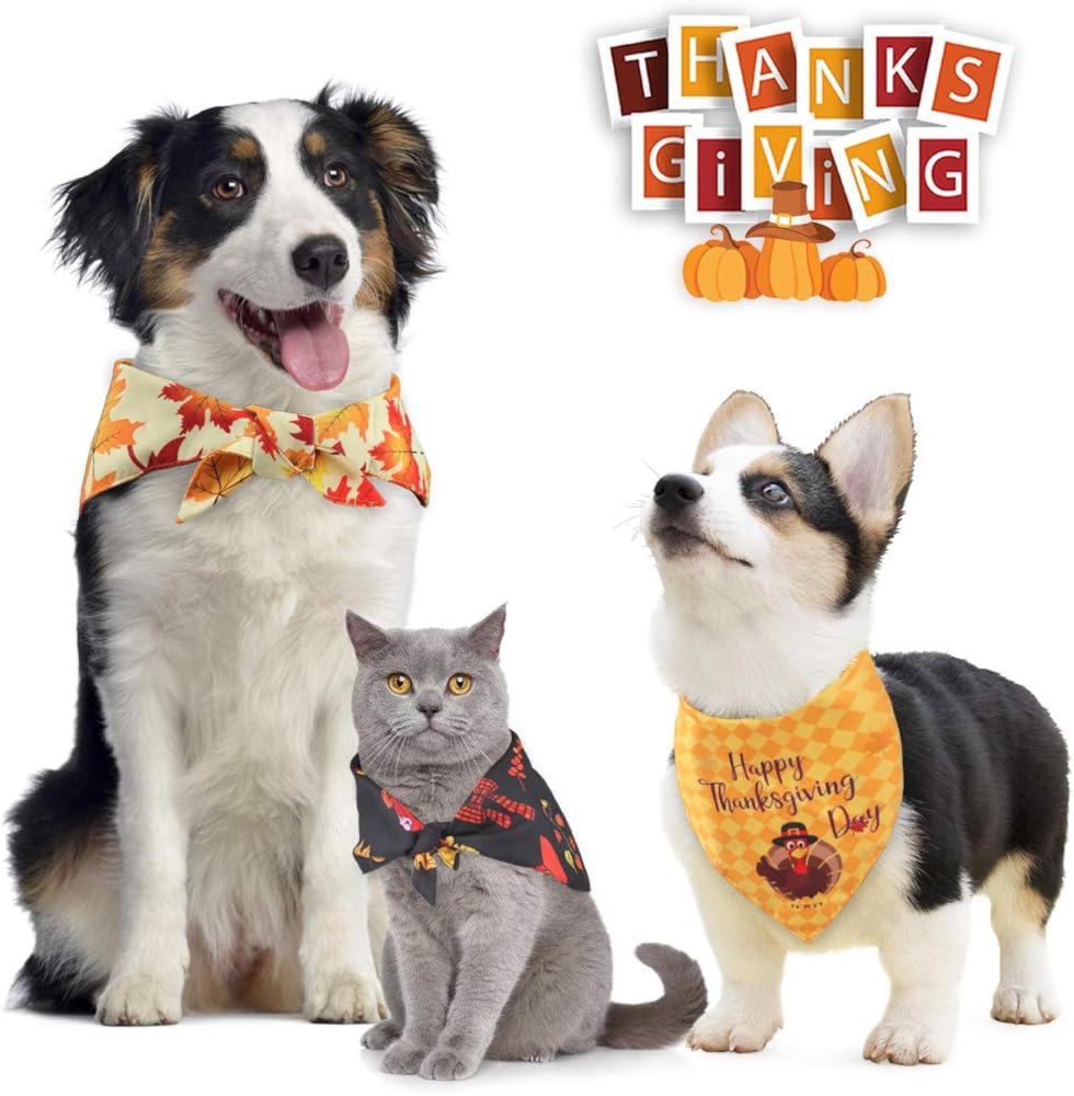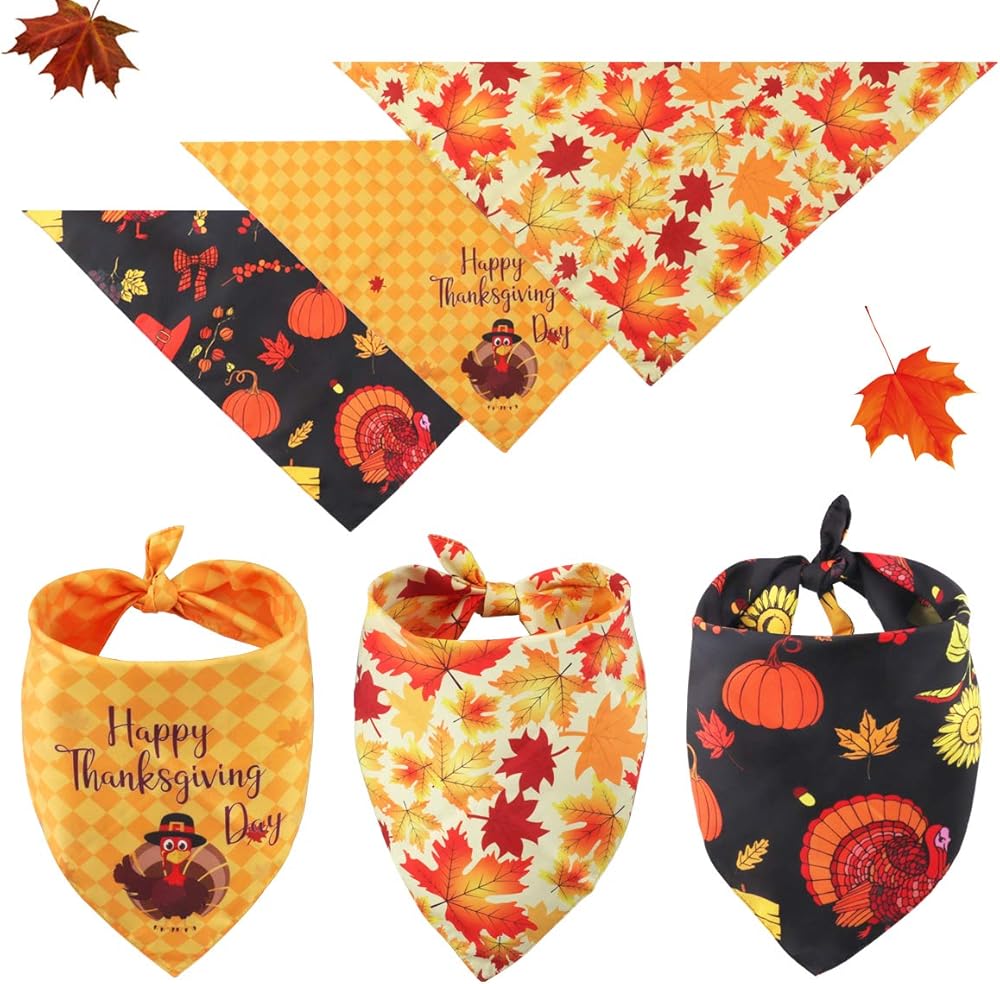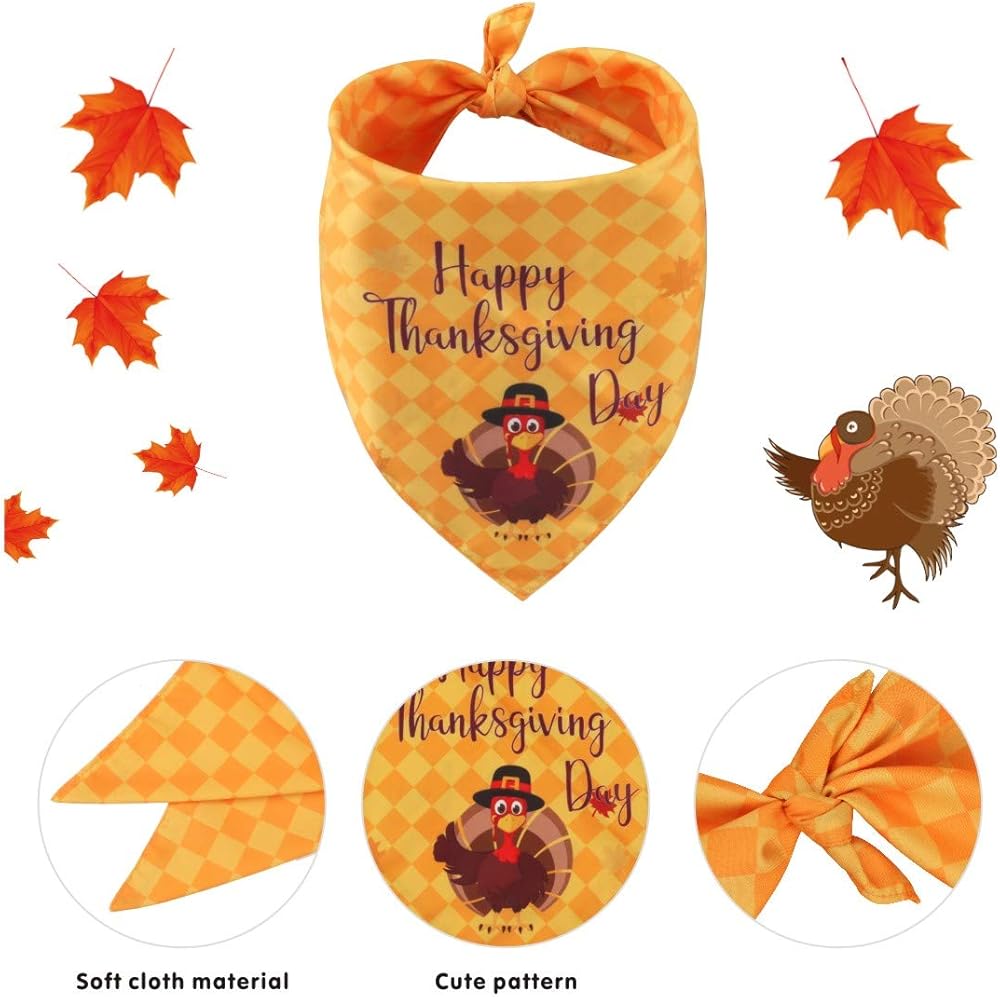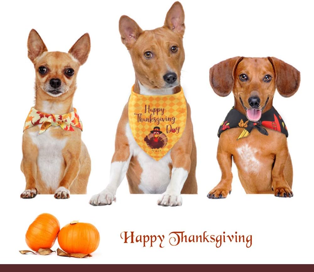 Idepet Thanksgiving bandana set applied many classic fall elements to design, such as pumpkin, maple leaf, turkey pattern.Ideal for dress up your dog for Thanksgiving Day!