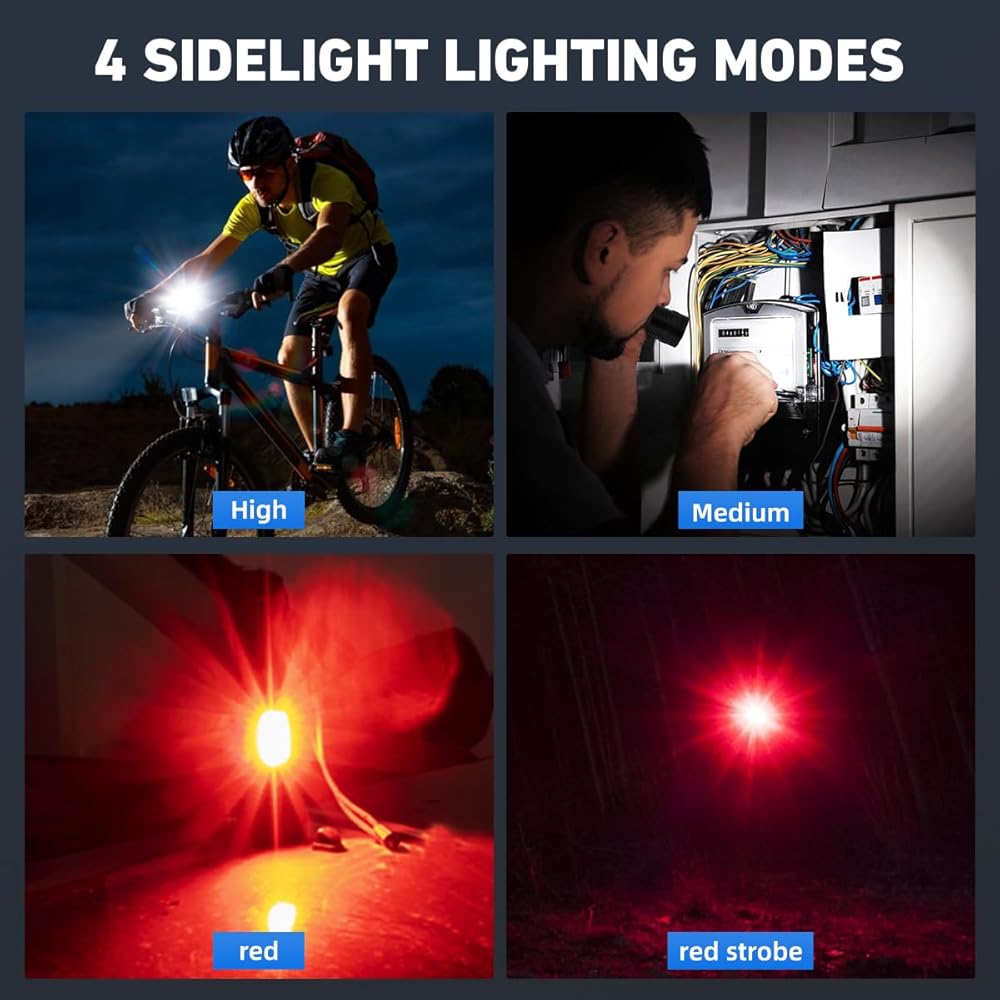 • [7 أوضاع إضاءة ومصباح يدوي للطوارئ]---هذا مصباح يدوي متعدد الوظائف قابل لإعادة الشحن لجميع احتياجات الإضاءة الخاصة بك. تحتوي هذه المصابيح الكاشفة التكتيكية التي تم ترقيتها حديثًا على 7 أوضاع إضاءة، بما في ذلك 3 أوضاع رئيسية: عالية / متوسطة / ستروب. 4 أوضاع إضاءة جانبية COB: ضوء ستروب عالي/متوسط/أحمر/أحمر. فقط اضغط مرتين على زر الطاقة. يمكن استخدام وضع الضوء الأحمر كمصباح يدوي للطوارئ، ويمكن استخدام وضع الضوء الأبيض كمصابيح كاشفة للمنزل والتخييم.