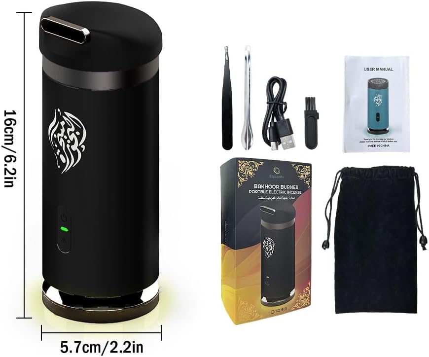 • 🌙🌟 مجموعة البخور الكهربائية المحمولة: سوف تحصل على مبخرة محمولة وحقيبة تخزين وكيبل USB وفرشاة وملعقة وملاقط ودليل الاستخدام. المبخرة المحمولة هي الهدية المثالية للعائلة والأصدقاء والأحباء والزملاء. إنه خيار مثالي لعيد الفطر والحفلات وغيرها من المهرجانات.