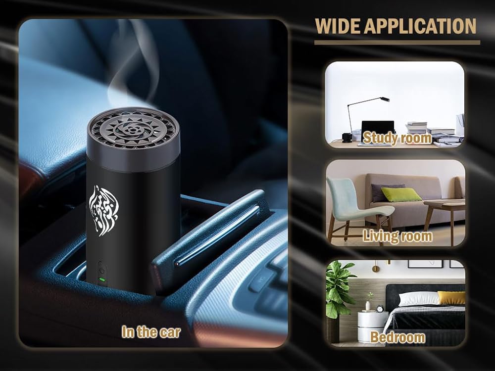 انليسينغ مبخرة كهربائية، مبخرة بخور، مبخرة الكترونية عربية قابلة لاعادة الشحن بمنفذ USB، مبخرة كهربائية محمولة، مبخرة كهربائية للسيارة، تستخدم للسيارة والمنزل (اسود)