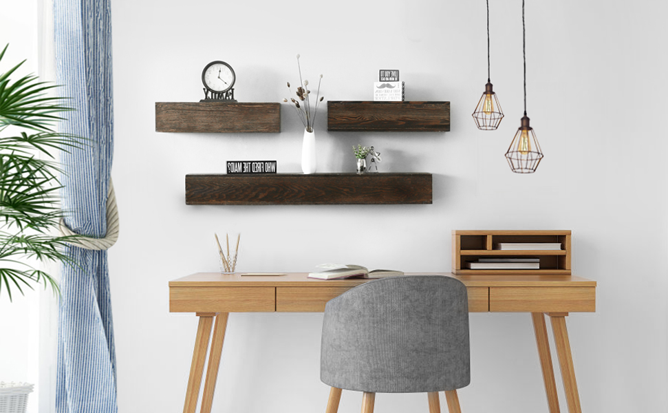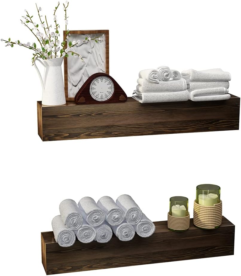 خشب أصلي مقطوع - توفر أرففنا العائمة الفاخرة علامات منشار حقيقية تكملها بقع بيت الجوز والبوليستر، نظرًا لطبيعة الخشب، توجد أحيانًا عقد وعيوب طبيعية. نحن نبذل قصارى جهدنا لاستخدام الخشب ذو المظهر الأفضل، ولكن في بعض الأحيان ستظهر بعض العيوب الطفيفة. نشعر أن هذه العيوب تضيف إلى شخصية الخشب وجماله.