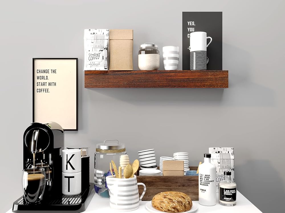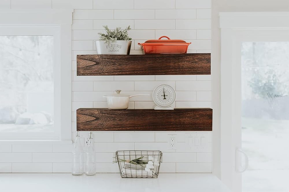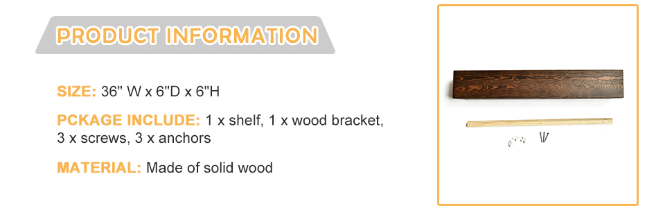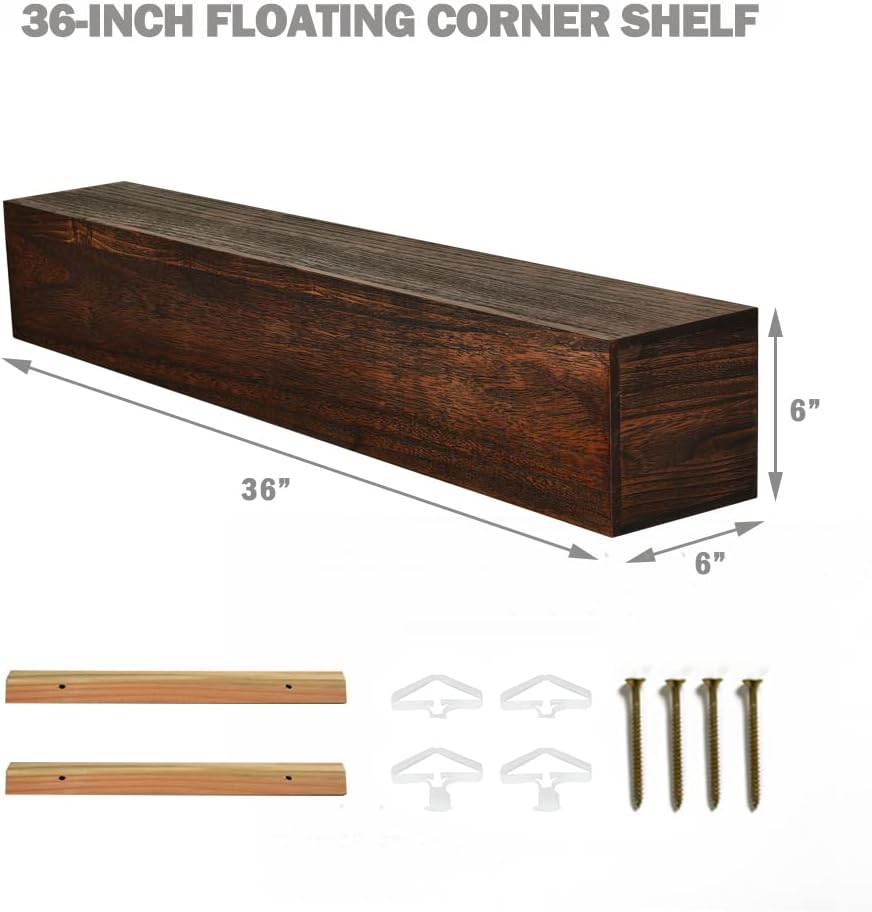 الأبعاد التقريبية - أرفف جدارية من خشب الصنوبر: 36 طول × 6 عمق × 6 ارتفاع بوصة.