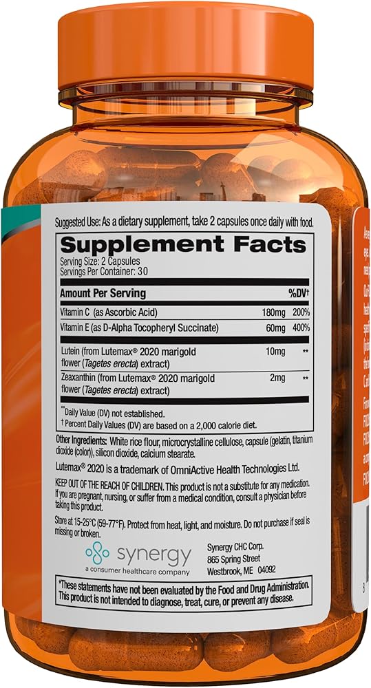 LUTEIN & ZEAXANTHIN: Formulated with clinically-studied Lutemax 2020, featuring 10mg of Lutein and 2mg of Zeaxanthin per serving, these specialized eye nutrients have been shown to support the eye's ability to filter blue light, contributing to long-term vision health.*