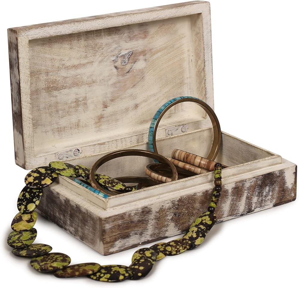 صندوق مجوهرات خشبي عتيق مقاس 20.32 سم للنساء والرجال والفتيات | تخزين ومنظم للقلائد كسب أزرار أكمام السفر صور صندوق هدايا مجوهرات