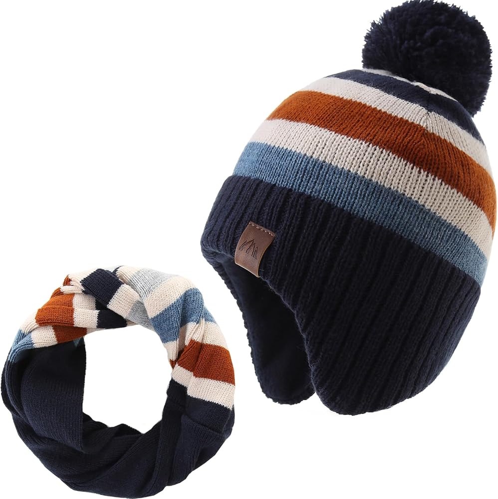 قبعات مون كيتي للأطفال الصغار قبعات شتوية للأولاد الصغار من الصوف للتزلج مع غطاء أذن دافئ