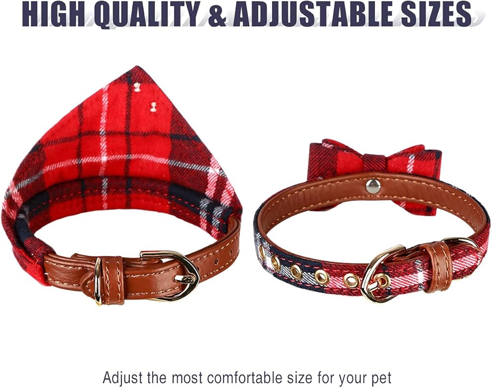 ❤[أطواق للكلاب الصغيرة] - مجموعة مكونة من 3 قطع من سلسلة وياقة الجراء بنمط كلاسيكي منقوش، وجرس فاخر وتصميم عقدة لطيف، تجعل حيوانك الأليف أكثر جمالاً.