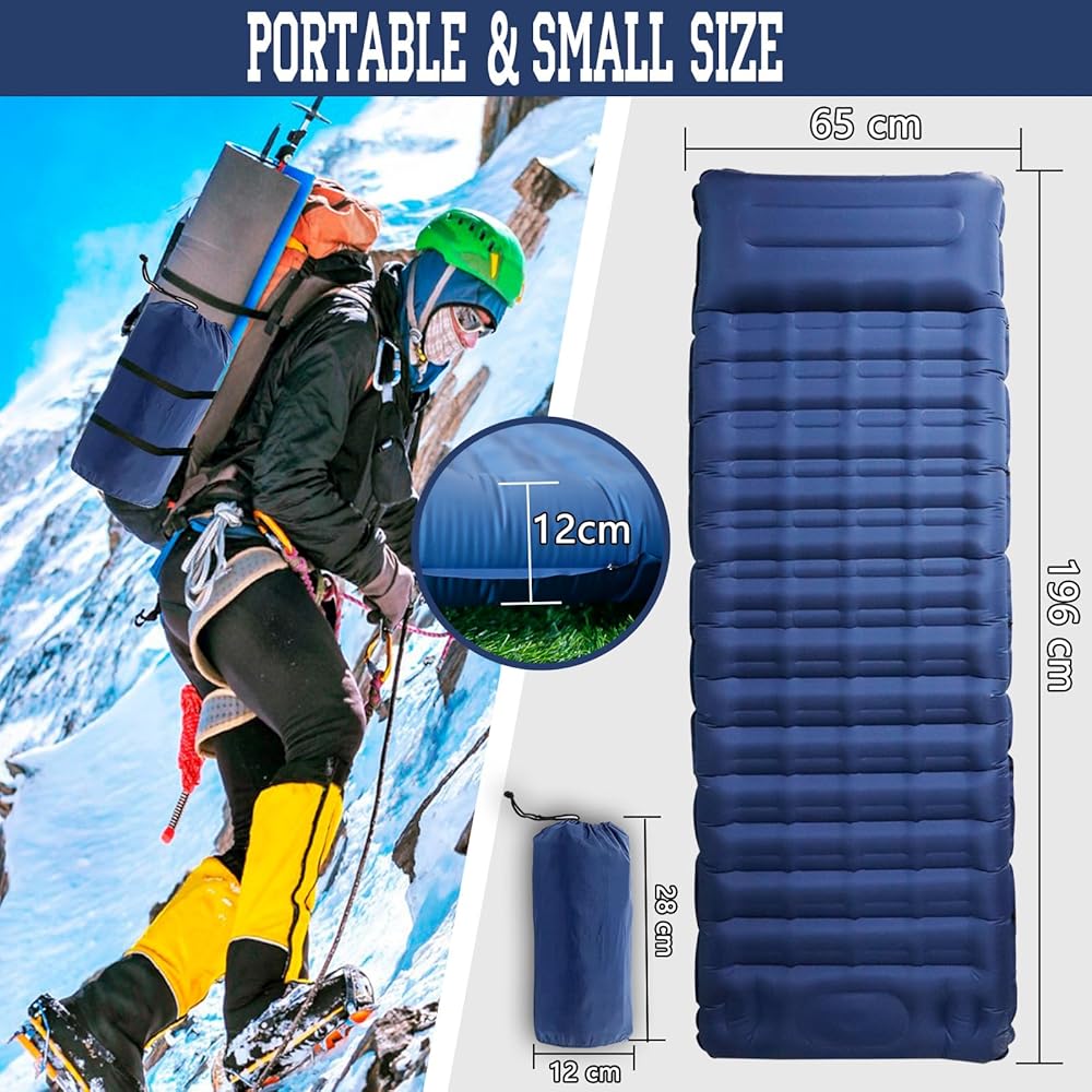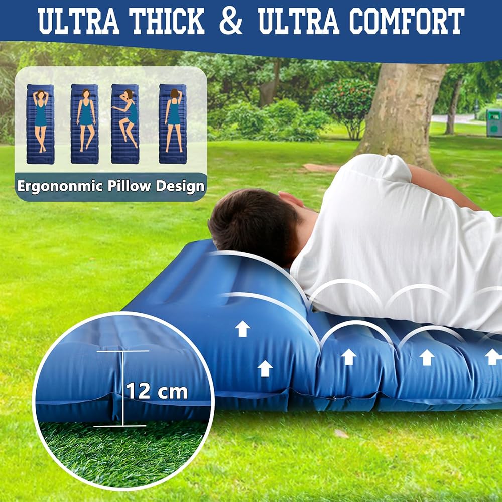 OPL5 Camping Sleeping Pad, 4.7 Inch Inflatable Air Mattress Camping with Pillow Carry Bag, Backpacking Sleeping Mat Built-in Foot Pump Waterproof Sleeping Pad for Hiking,Camping, Traveling(12CM Navy