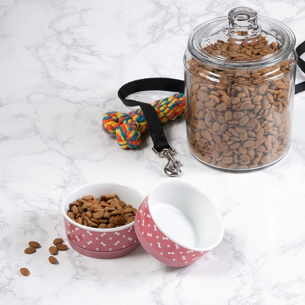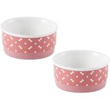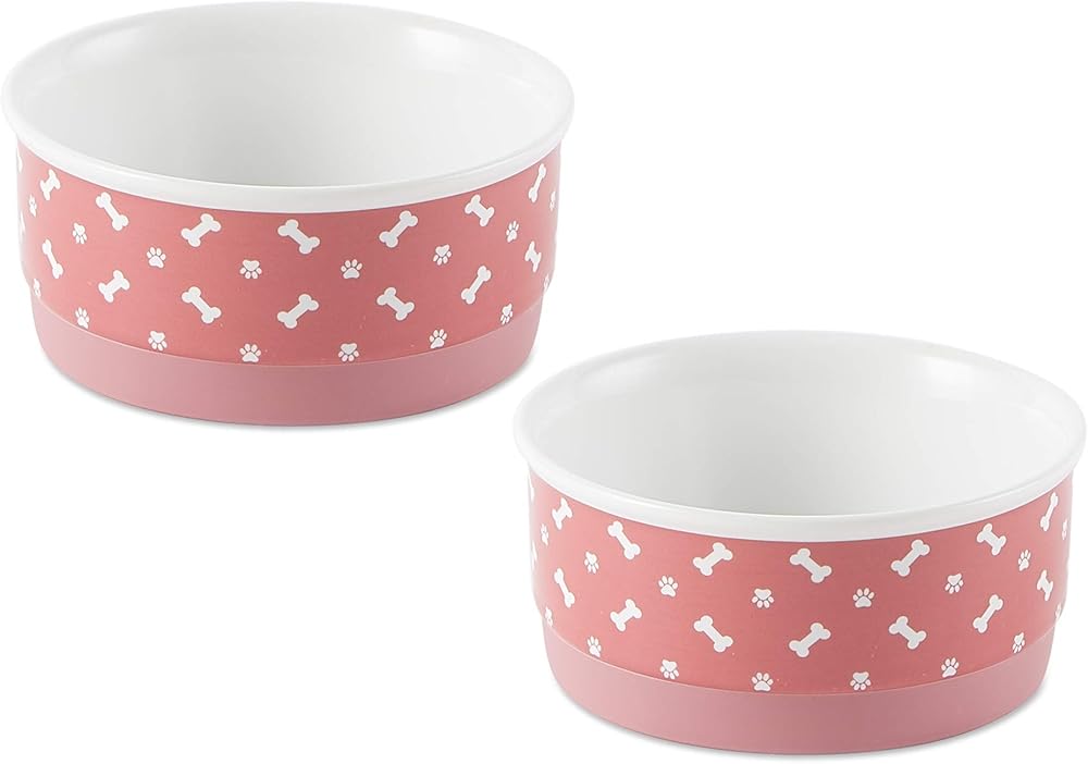أوعية الحيوانات الأليفة المصنوعة من السيراميك الجاف على شكل عظمة، قاعدة آمنة للاستخدام في الميكروويف وغسالة الأطباق من أجل تغذية آمنة مع فوضى أقل، مجموعة أوعية صغيرة، 4.25x2، وردي، عدد 2