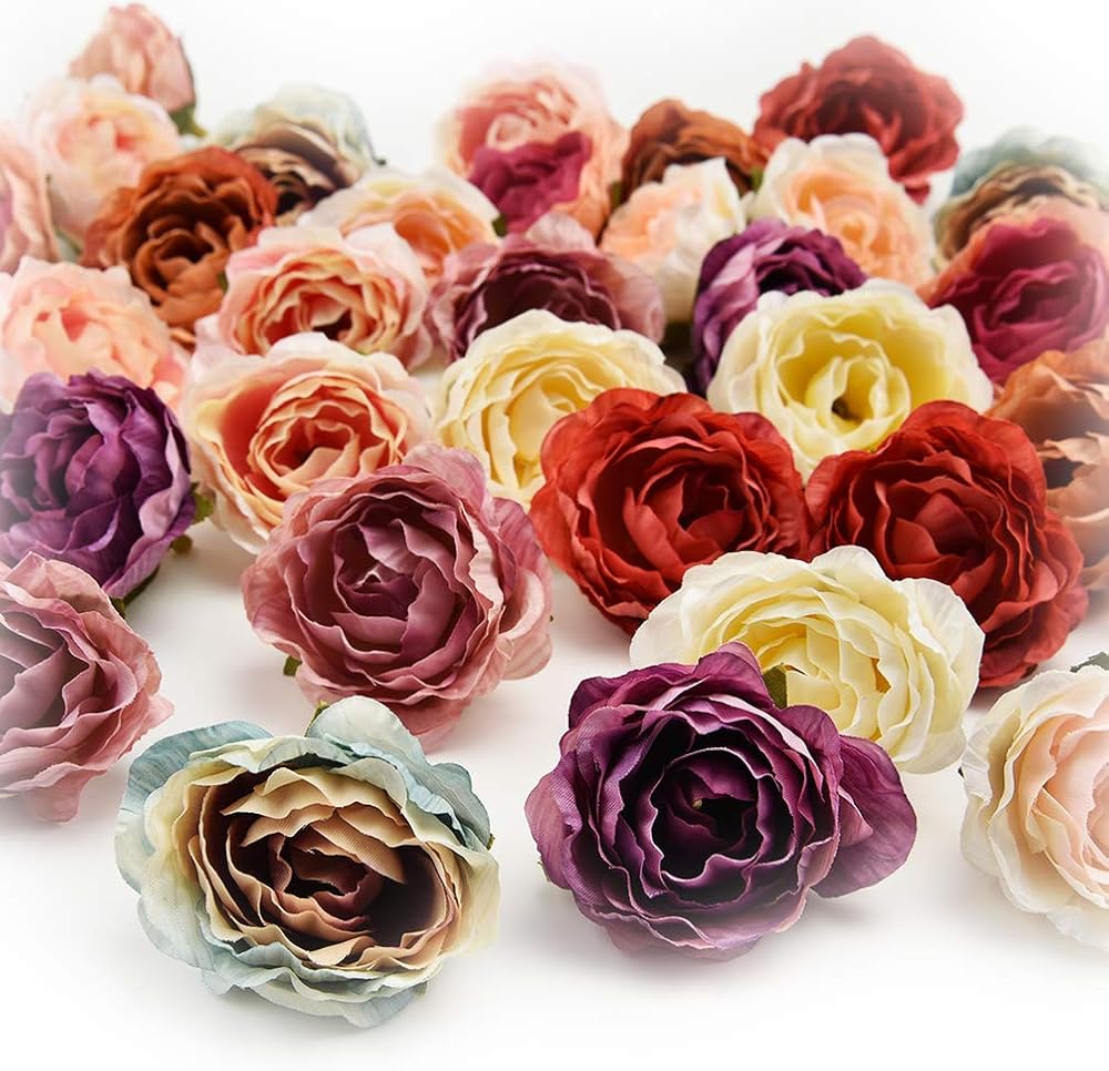 Flower heads in bulk wholesale for crafts Carnation Silk Peony Artificial Rose Flower Heads European Wedding Decoration Diy Accessories Fake flowers party Birthday Home Decor 30pcs 4CM