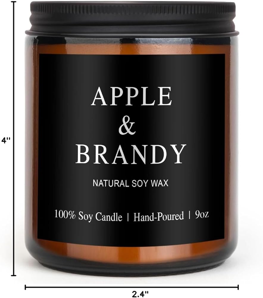 شموع معطرة للرجال - رائحة برميل براندي التفاح | شمع الصويا المحروق لمدة 50 ساعة في الزجاج البني - هدايا الكهف للرجال، عيد ميلاد له، هدية عيد الأب (9 أونصة)