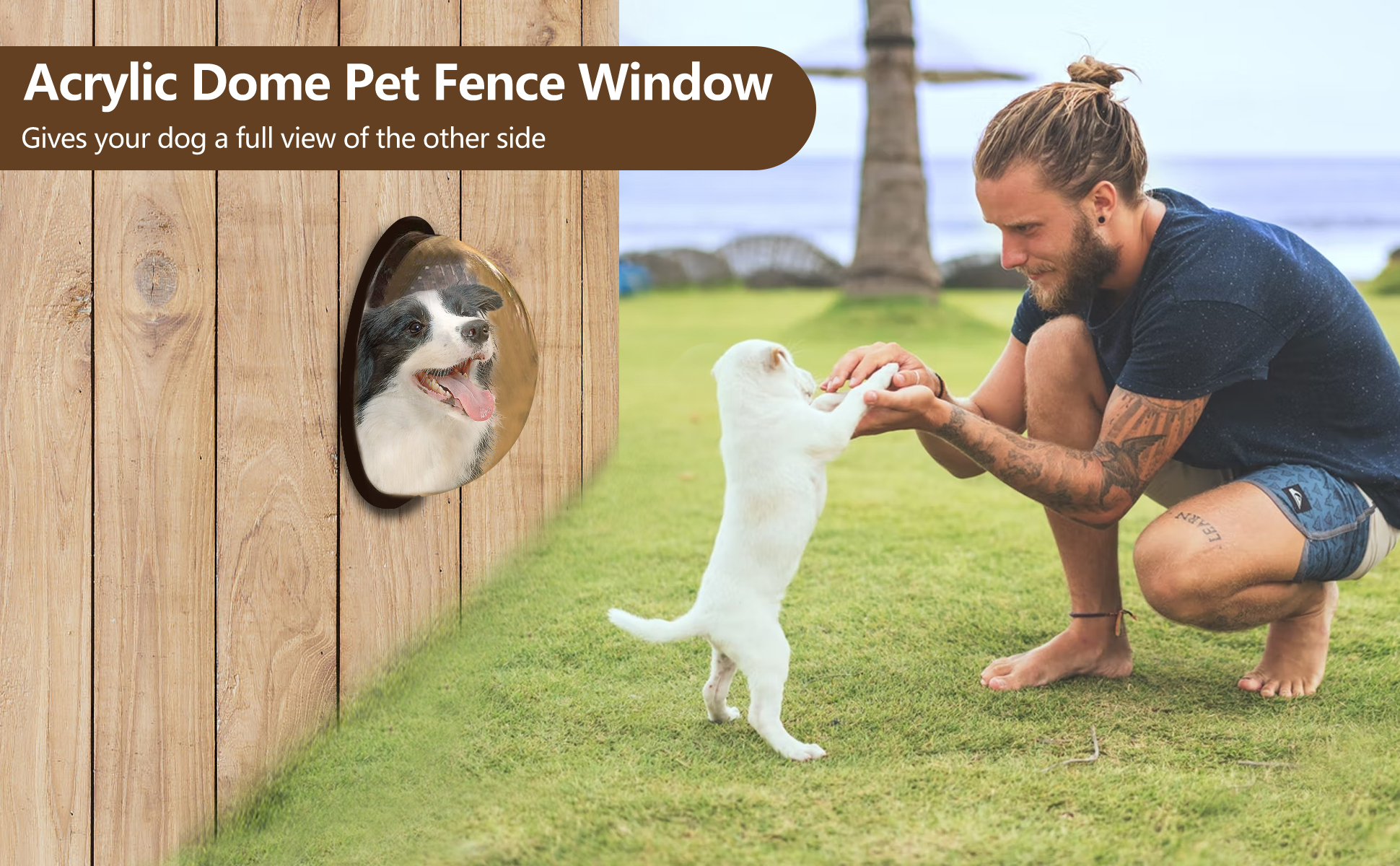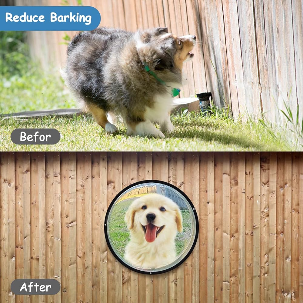 • 【تصميم صديق للكلاب】- يمكن لكلبك رؤية العالم على الجانب الآخر من السياج من خلال قبة الأكريليك الشفافة، وإرضاء فضوله، وتخفيف قلق وهوس الكلاب في الفناء بشكل فعال، ومنع الكلاب من النباح والحفر والقفز على الأسوار.
