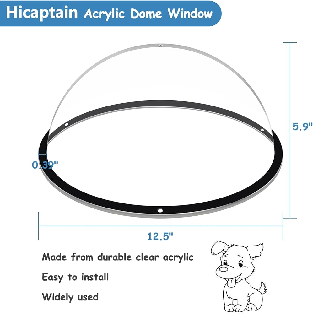 نافذة سياج للكلاب من HiCaptain، نافذة على شكل قبة أكريليك مقاس 12.5 بوصة، نافذة شفافة للحيوانات الأليفة، رائعة للأطفال والحيوانات الأليفة، بيت للكلاب، بيت الشجرة، تخفف التوتر، تقلل النباح، سهلة التركيب (عبوة واحدة)