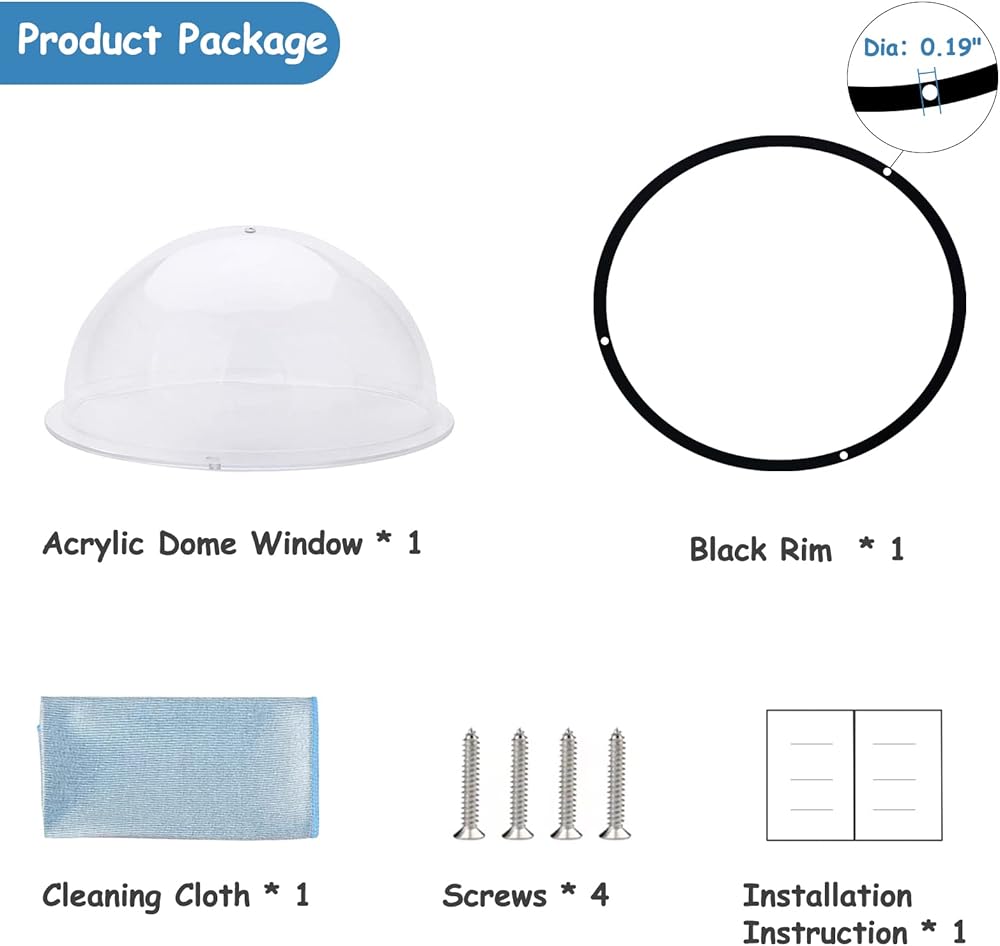 • 【نافذة سياج للكلاب】- يبلغ قطر القطر الخارجي لقببة الكلاب المصنوعة من الأكريليك الشفاف 12.5 بوصة، وعمق DIA الداخلي 11.7 بوصة و5.9 بوصة مع حلقة زخرفة سوداء وتتضمن جميع ملحقات التثبيت الضرورية للحفاظ على سياجك وحيواناتك الأليفة آمنة.