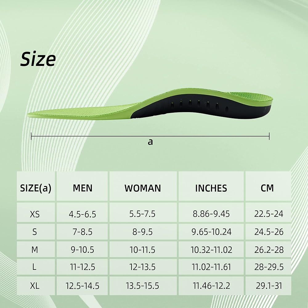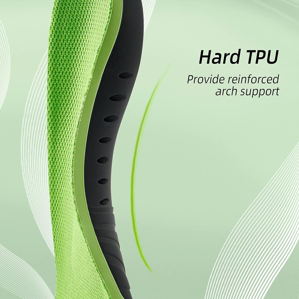 ARCH SUPPORT SHOE INSOLES - TPU material is used to provide super support for the arch of the foot, the support is more stable, and the stability of the foot is increased. WARNING: you may feel foot pressure during 3-7 days of wearing. It's normal because your feet are not used to arch support. We strongly recommend starting from 2-3 hours a day and increasing the time each day gradually.