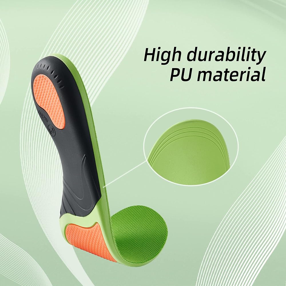 PREMIUM MATERIAL SIZE - Breathable non-slip fabric on the surface of the insole helps keep feet cool and prevents odors, the overall use of PU material provides high durability for long-term use. Adjustable size: insoles can be easily trimmed and adapted.