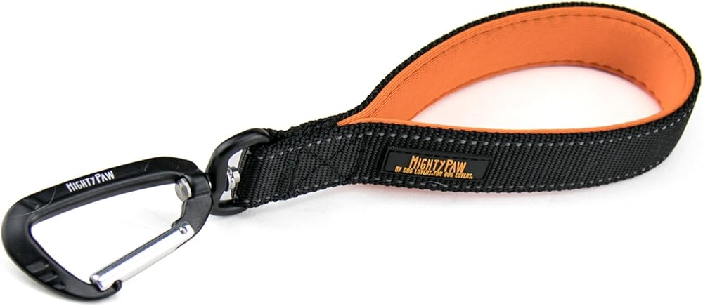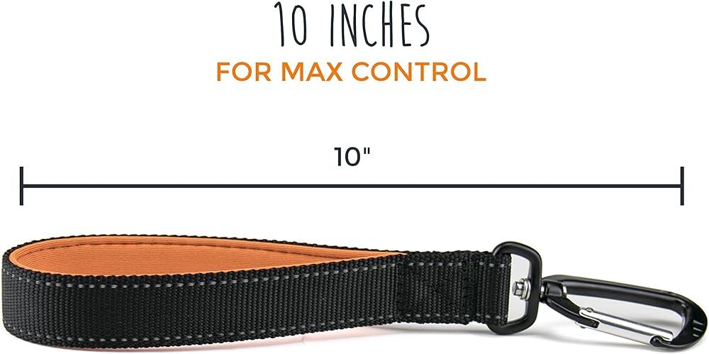 علامة تبويب تدريب مايتي باو - مقود قصير للكلاب - مقبض مبطن - سلسلة مرور قوية للحيوانات الأليفة - مشبك حلقة تسلق متضمن - علامة تبويب قصيرة مبطنة للحيوانات الأليفة - مقبض حركة مبطن للمقود - تدريب الكلاب الأليفة - 10 بوصة (أسود)