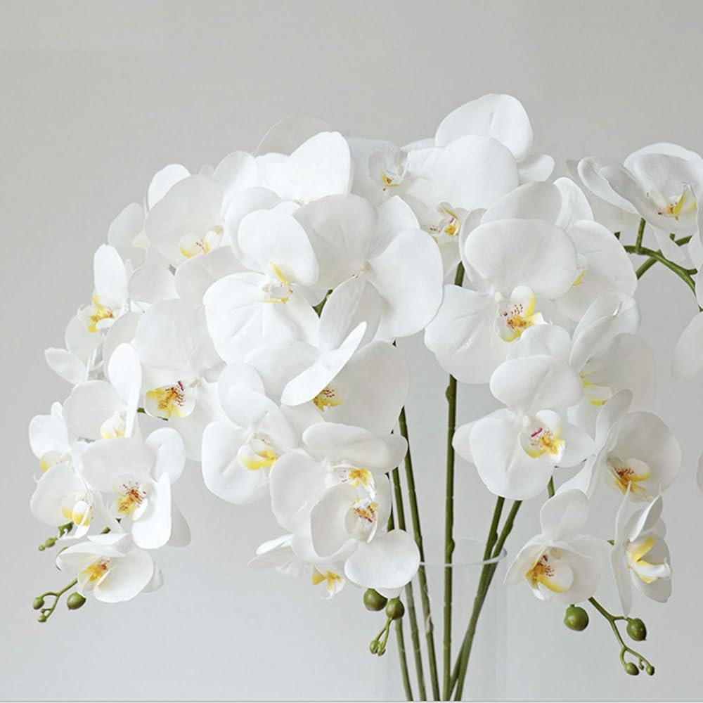زهرة ذات ملمس حقيقي: أوراق شجر الأوركيد الصناعية ذات الملمس الحقيقي من البولي يوريثان، وسيقان الحديد ملفوفة بالبلاستيك، مظهر جديد وواقعي، توضع فروع زهور الفينوبسيس الصناعية في مزهرية، طبيعية وحيوية.