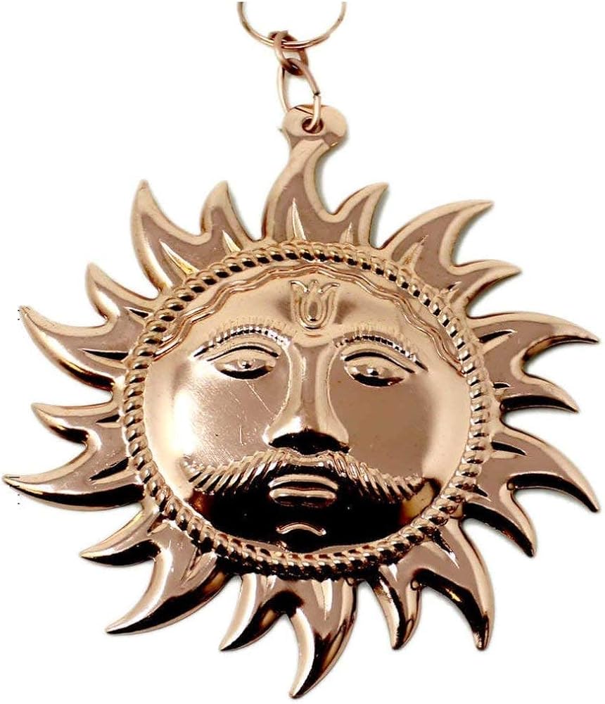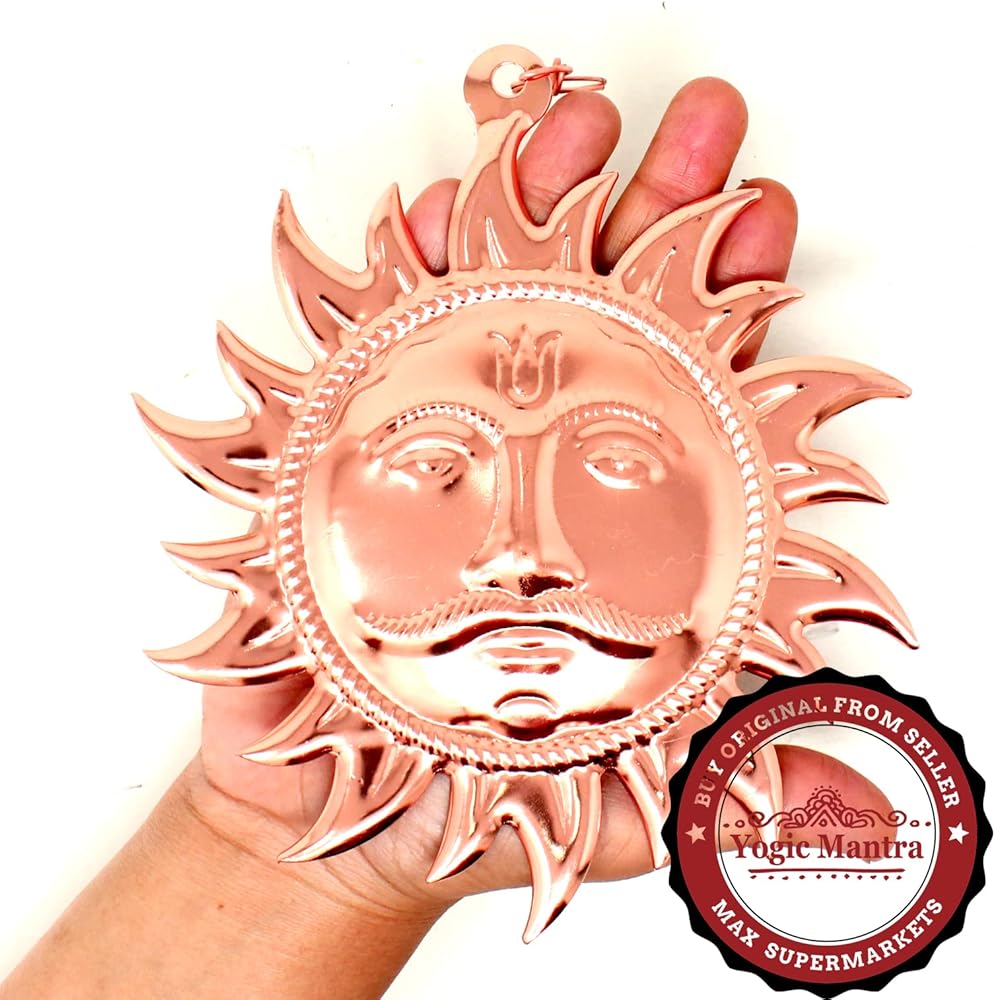 Yogic Mantra Sun Wall Decor Art (Large 6 Inch Size) Sun Face Copper Color Metal Surya Yantra Wall Hanging Sun Face Door Decor Plaque Sculpture For Vastu Dosh Nivaran Yantra, Shani Dosh Yantra Talisman