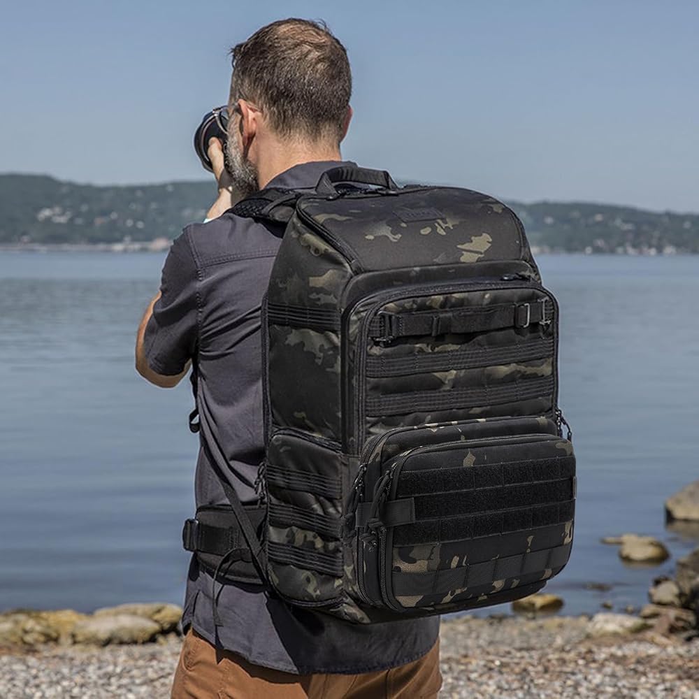 【تنظيم وظيفي】- تحتوي حقيبة Utility Molle الخاصة بنا على مقصورتين رئيسيتين مفتوحتين بالكامل. تم تصميم الحجرة الأمامية والحجرة الخلفية بجيوب متعددة لتخزين الملحقات الصغيرة الضرورية. ونضيف غلافًا من الفينيل قابل للإزالة مقاس 7 × 10.5 بوصة للخرائط.