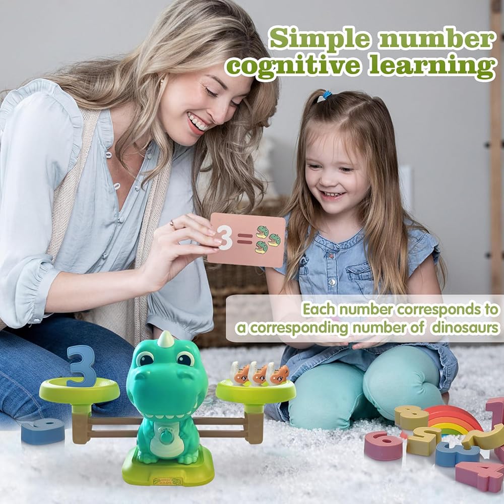 【Math toys & games】Dinosaure balance math ducational toys are suit for kids 3-5,5-7. Kids can put the colorful number block on the left and the small dinosaur weight on the right to balance the sides. This stem toys is helpful for preschool learning activities that help children improve math skills and hand-eye coordination in the process of thinking and hands-on.