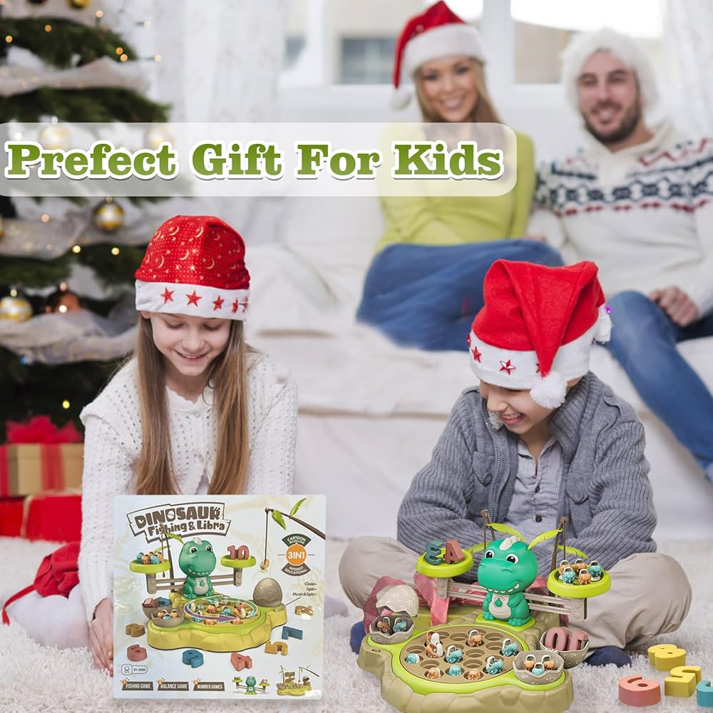 【Innovative 2-in-1 Functionality】This dinosaur math educational fishing toy combines the fun of fishing game with basic number recognition, creating an innovative 2-in-1 design. It offers three carefully designed scenes, allowing children to enhance their basic numerical understanding through fishing game, number recognition, and interactive play.The board games for kids 4-6 is most suitable.